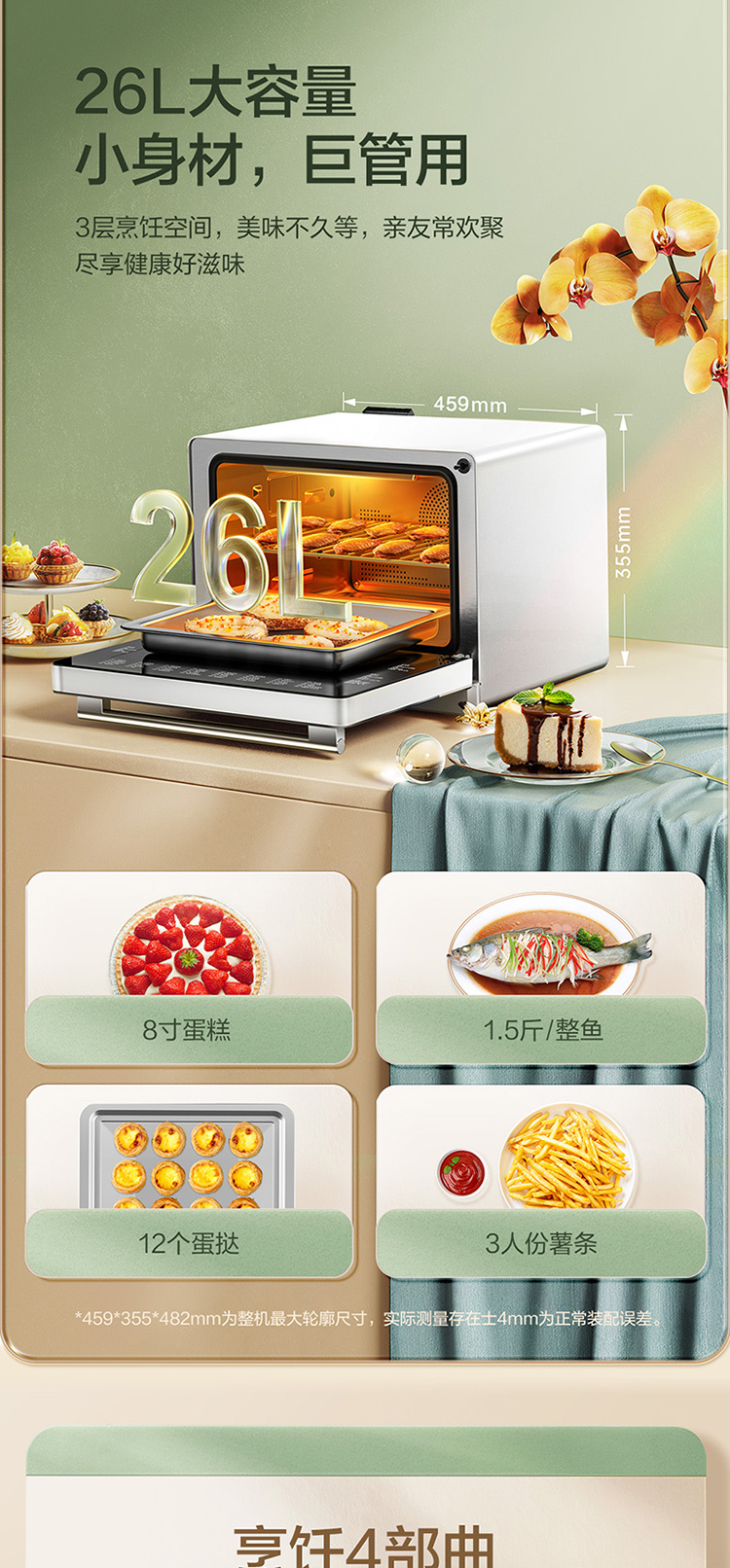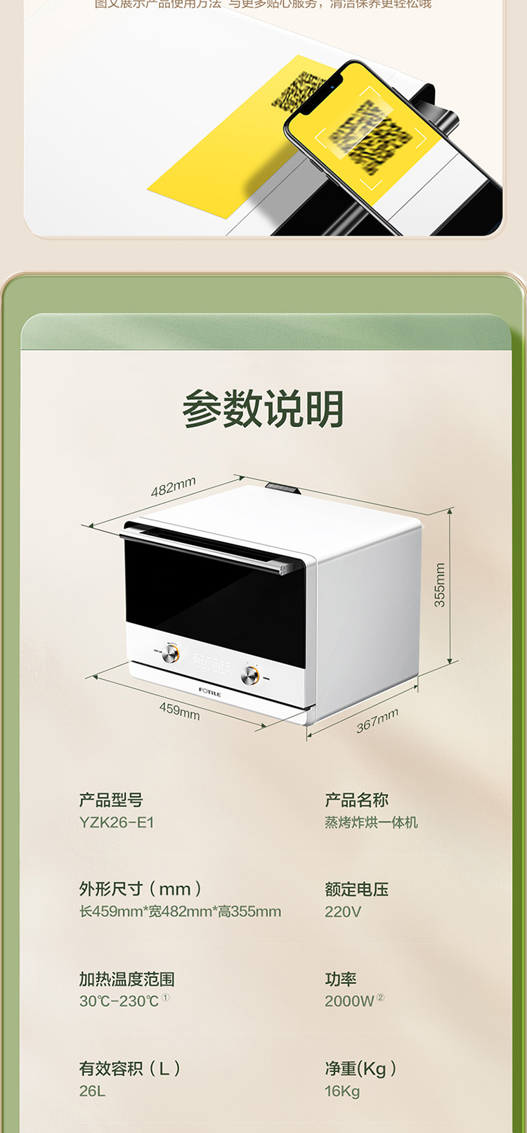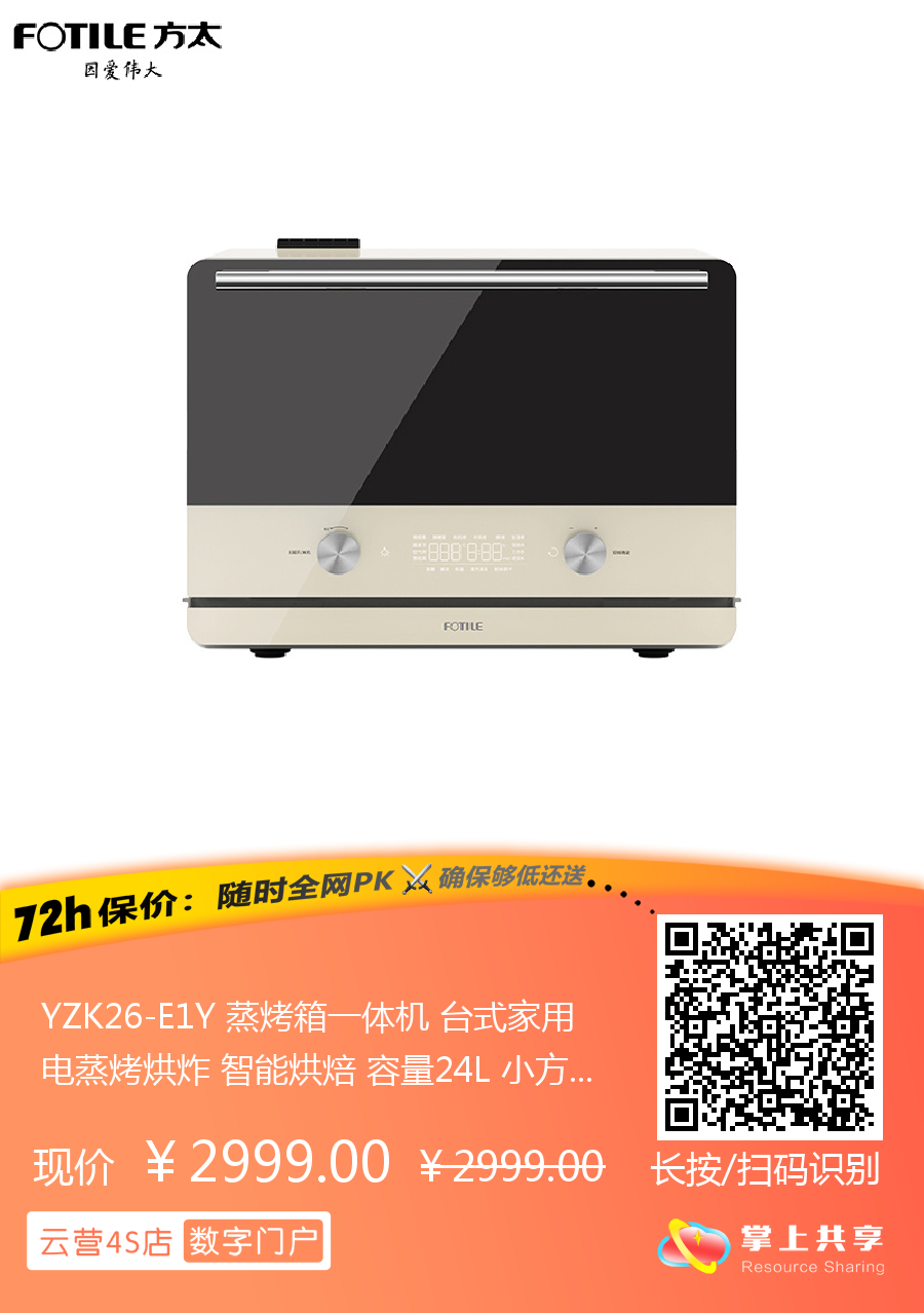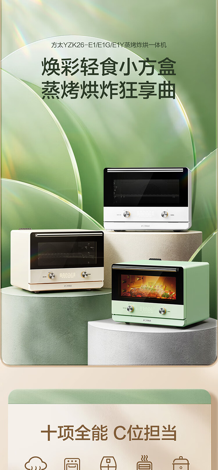 YZK26-E1Y 蒸烤箱一体机 台式家用 电蒸烤烘炸 智能烘焙 容量24L 小方盒系列 方太(FOTILE)