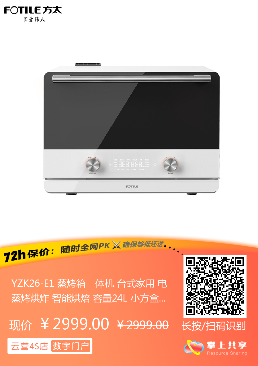 YZK26-E1 蒸烤箱一体机 台式家用 电蒸烤烘炸 智能烘焙 容量24L 小方盒系列 方太(FOTILE)