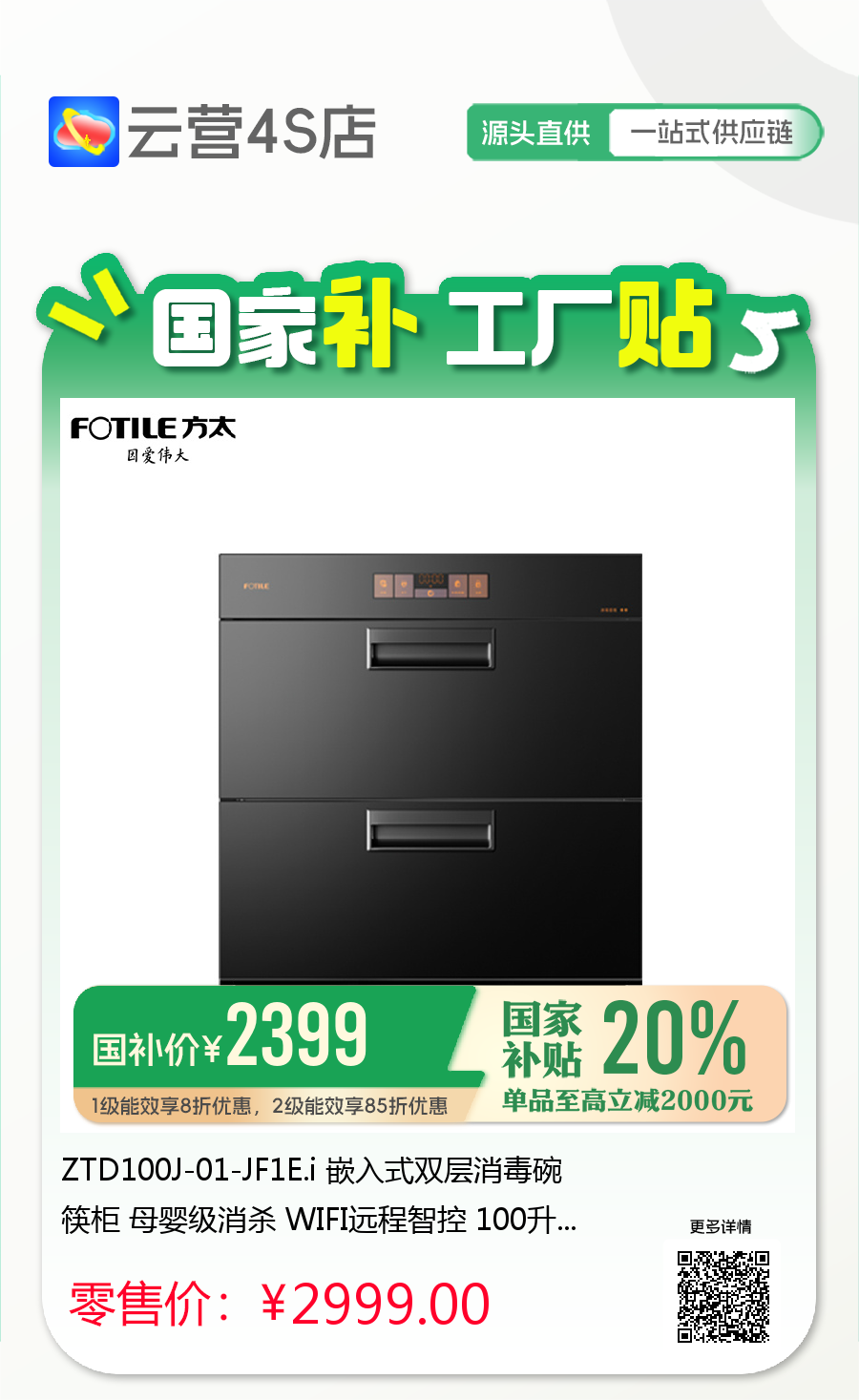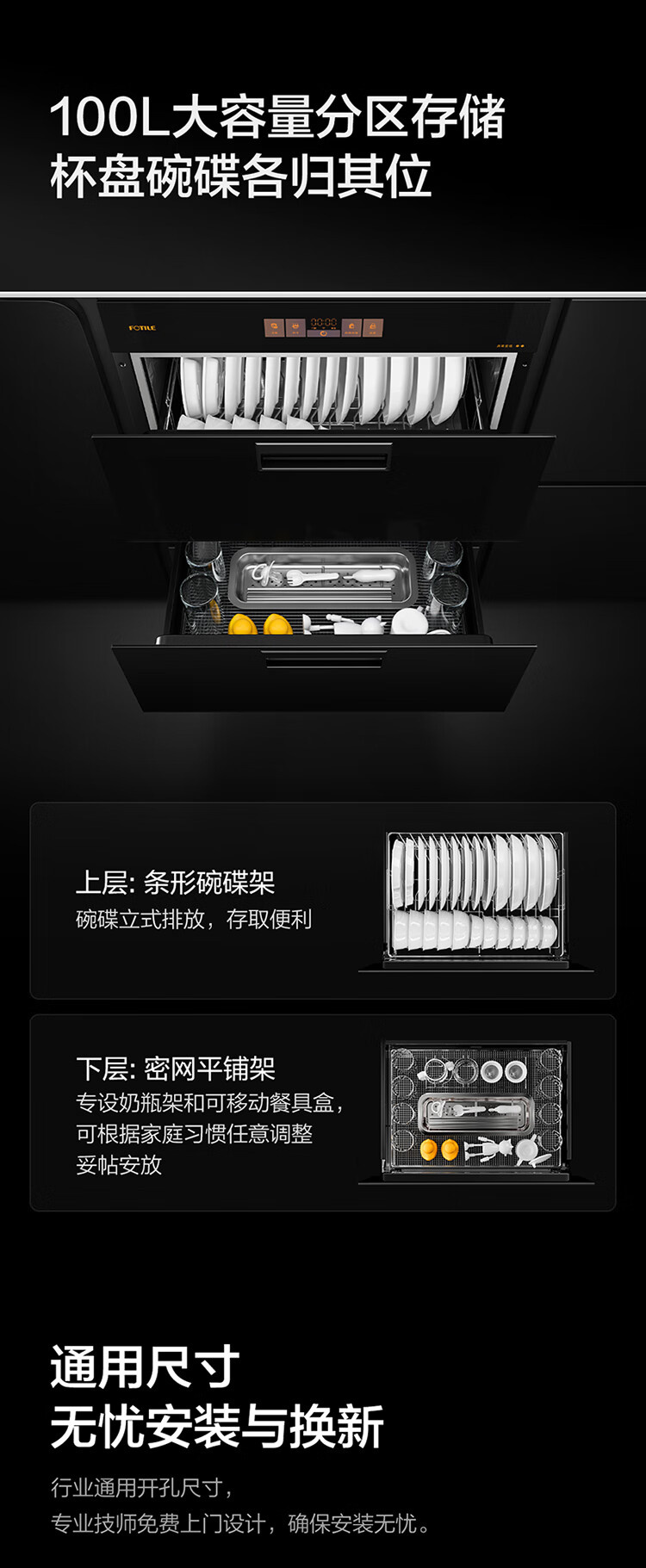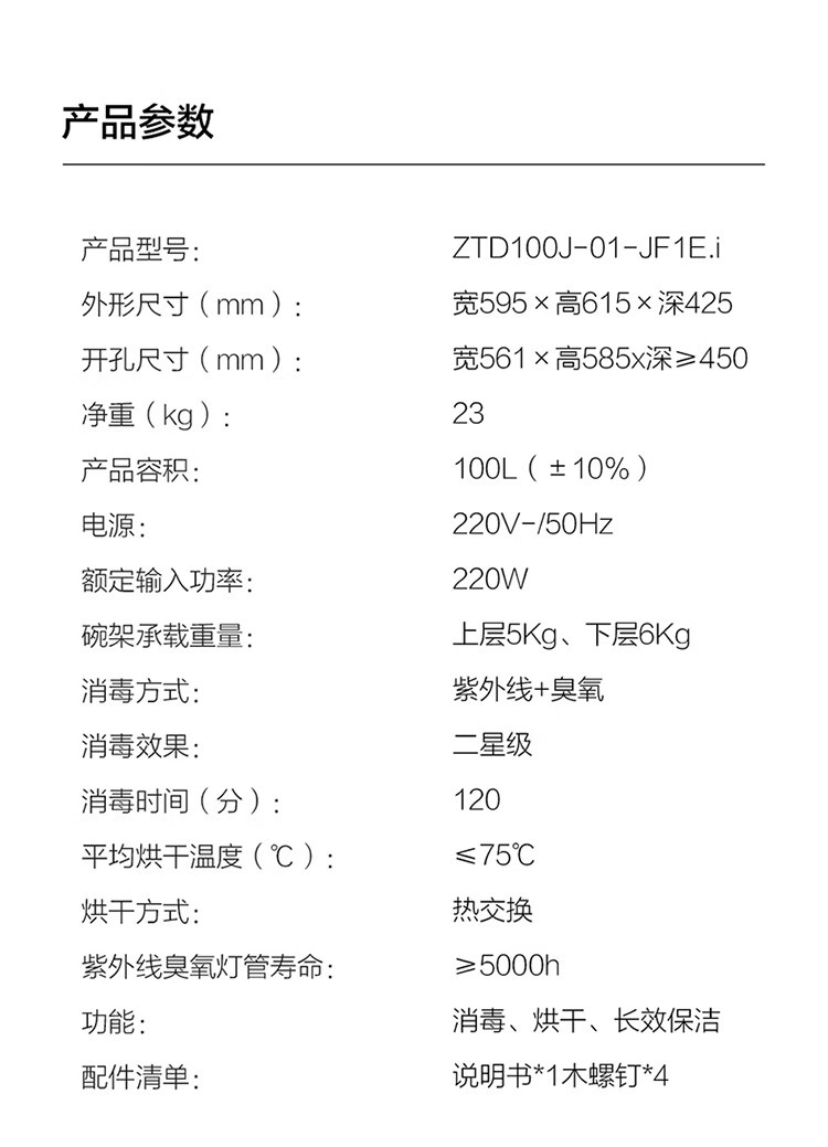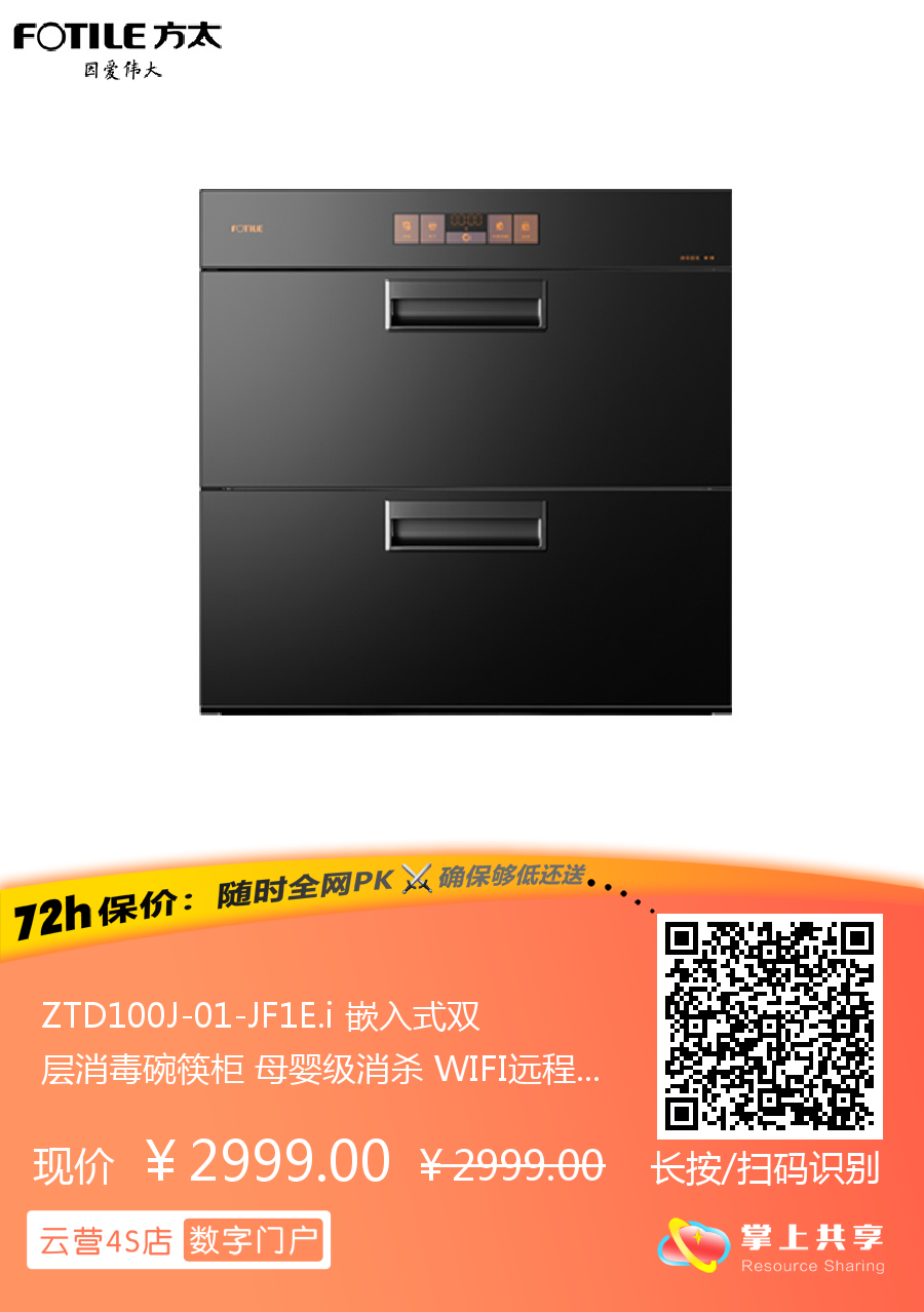 ZTD100J-01-JF1E.i 嵌入式双层消毒碗筷柜 母婴级消杀 WIFI远程智控 100升容量 方太(FOTILE)