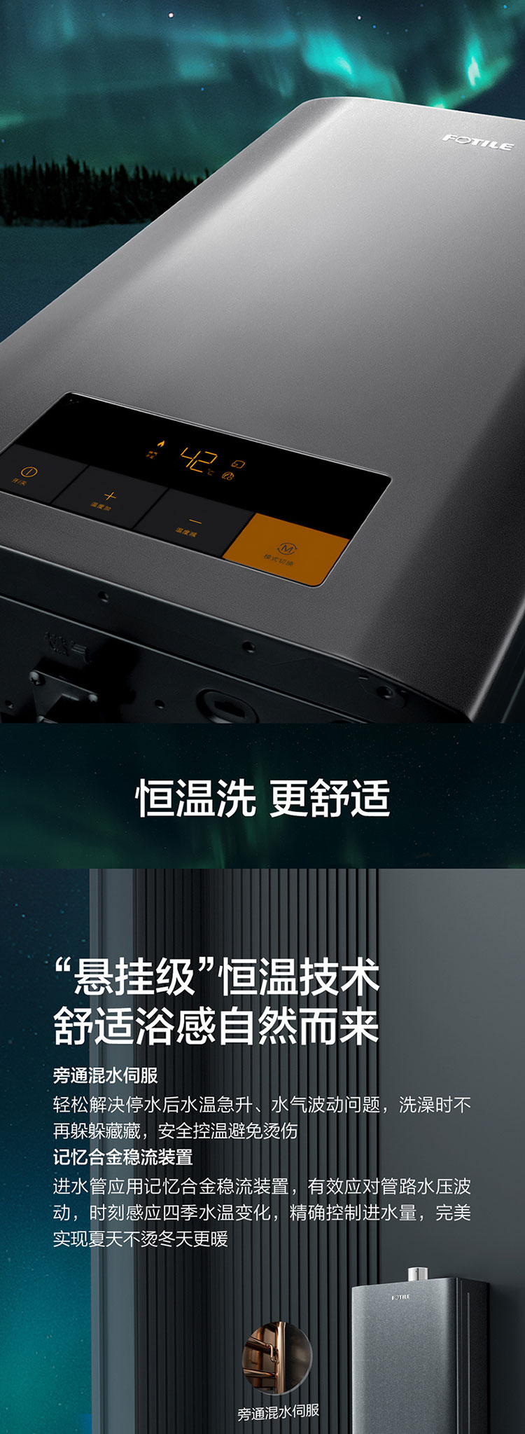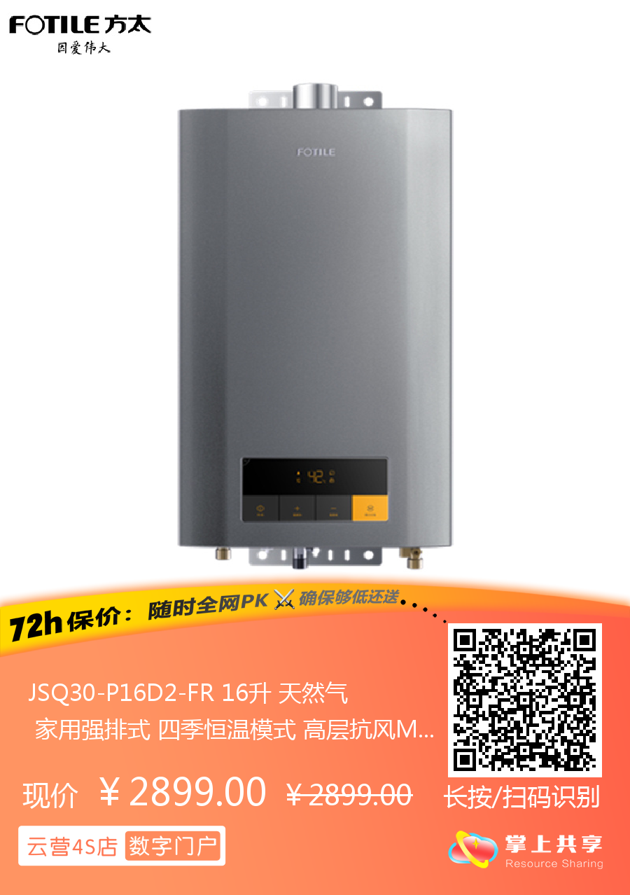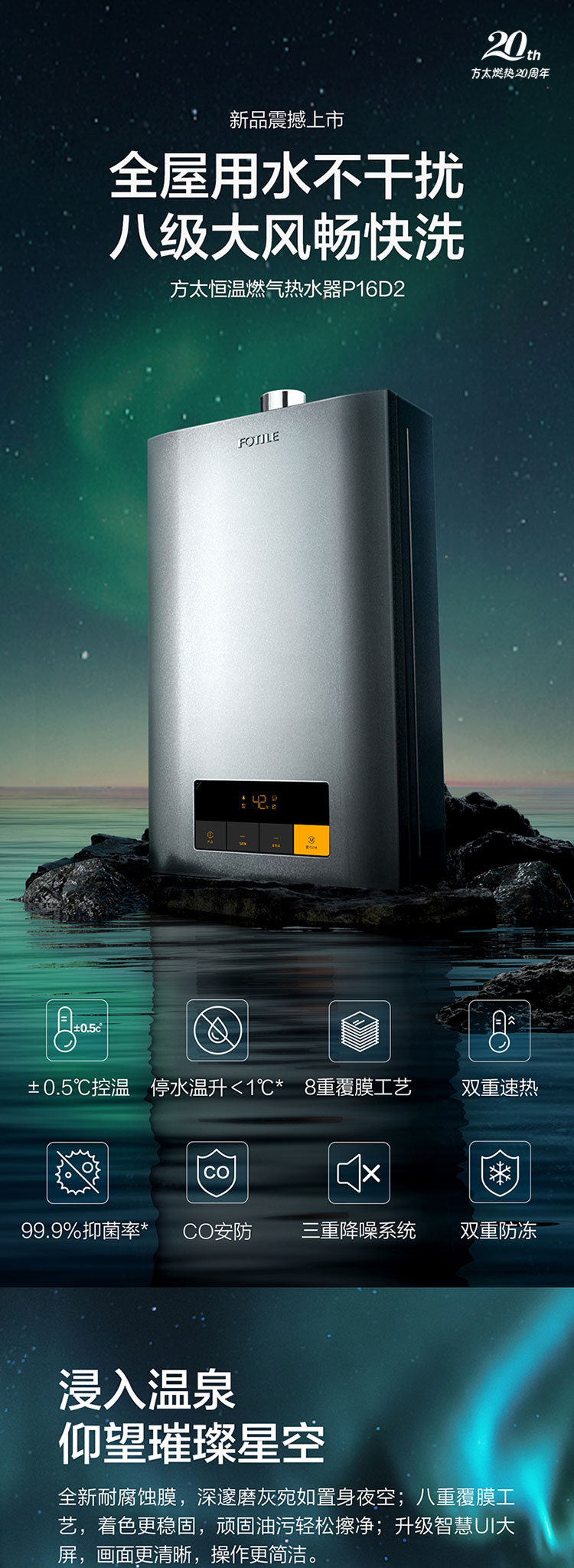 JSQ30-P16D2-FR 16升 天然气 家用强排式 四季恒温模式 高层抗风Max系列 2级能效 方太(FOTILE)