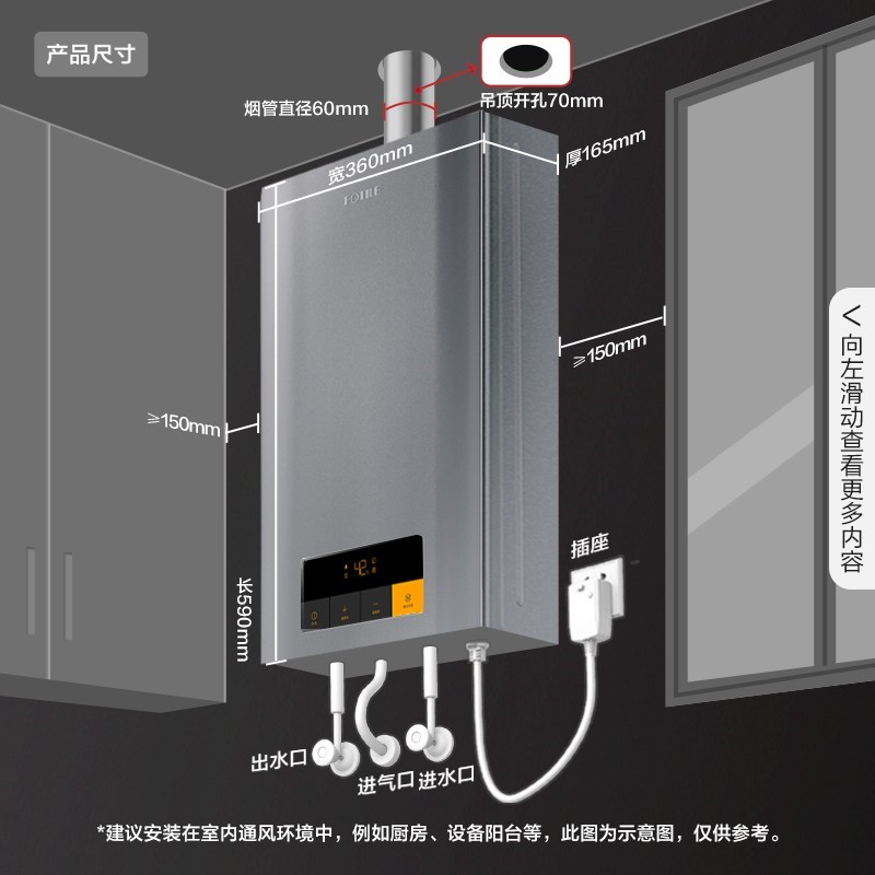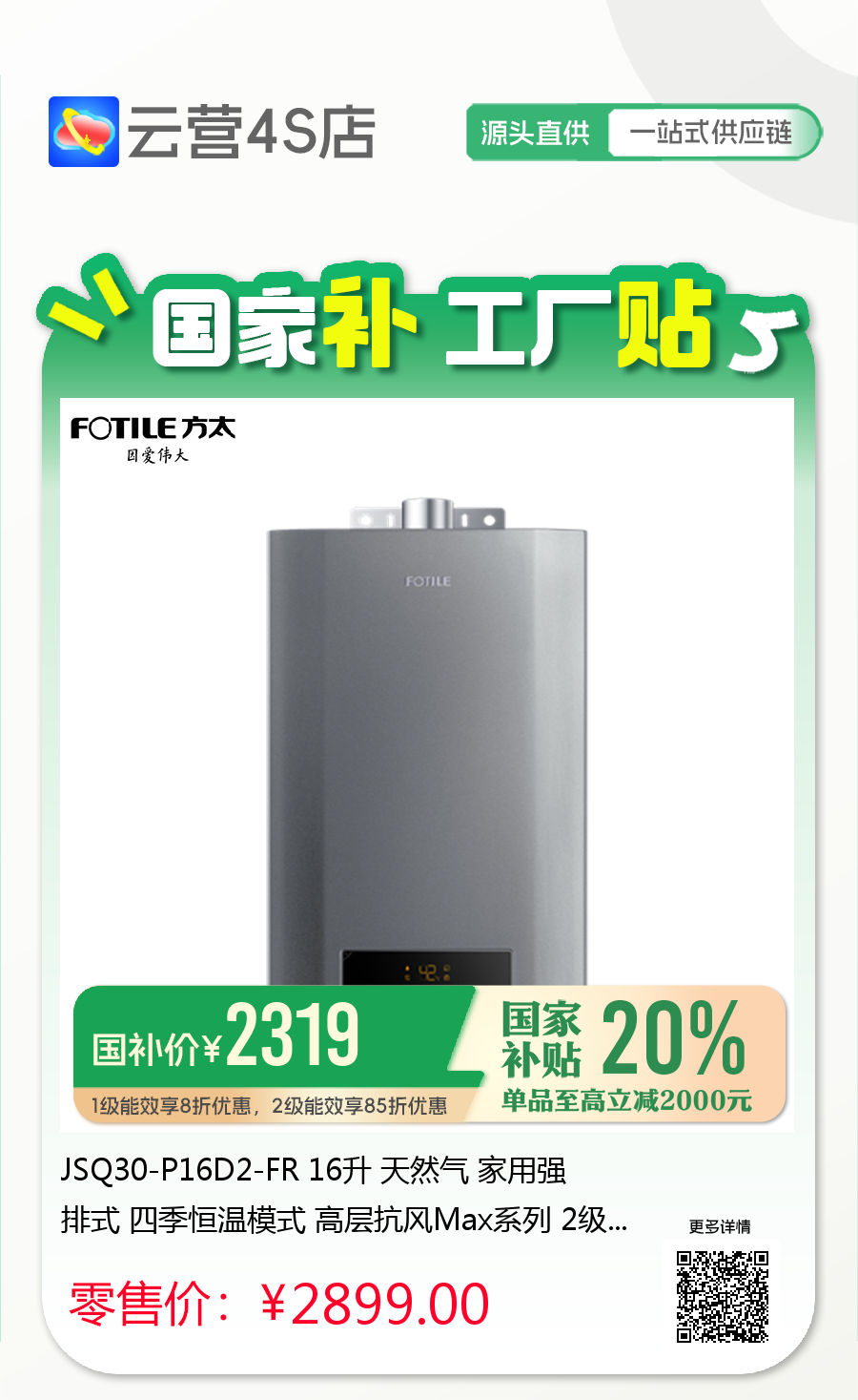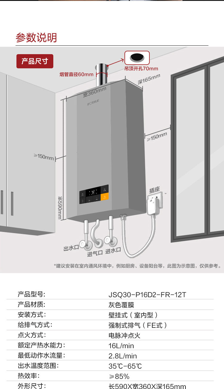 JSQ30-P16D2-FR 16升 天然气 家用强排式 四季恒温模式 高层抗风Max系列 2级能效 方太(FOTILE)