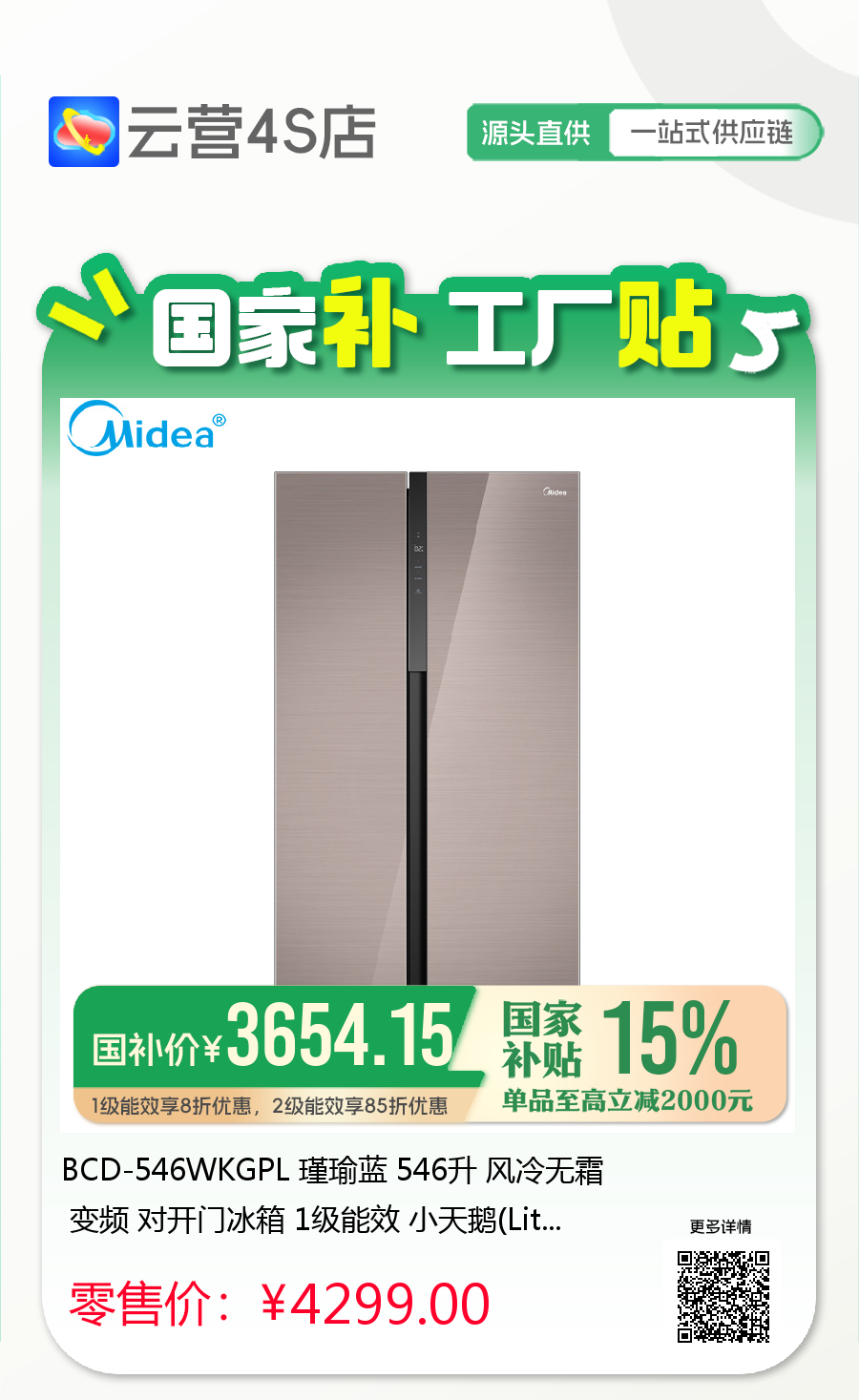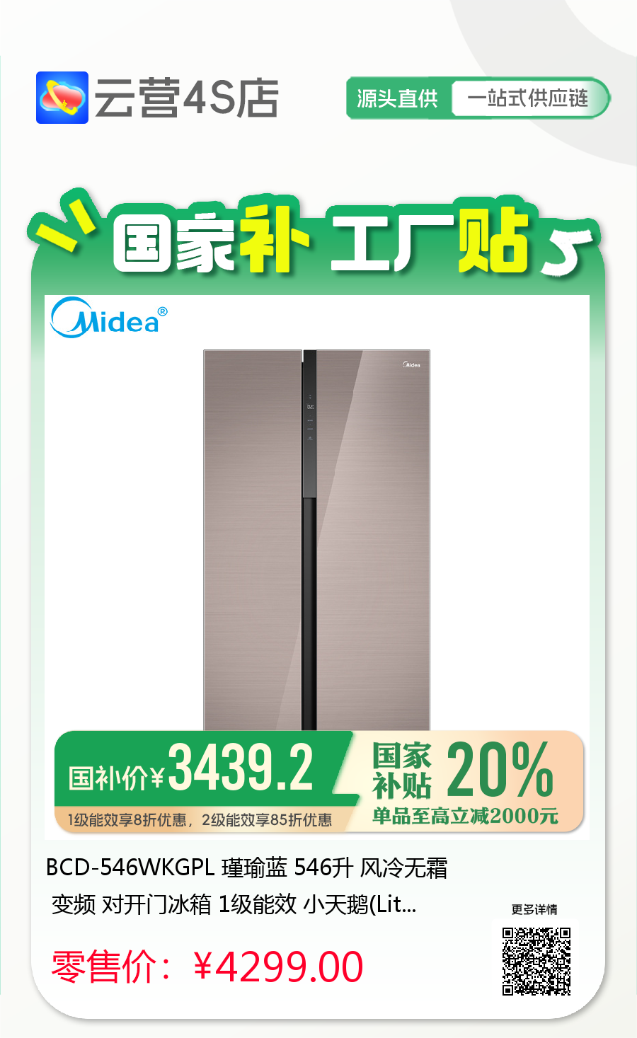 BCD-546WKGPL 瑾瑜蓝 546升 风冷无霜 变频 对开门冰箱 1级能效 小天鹅(LitteSwan)