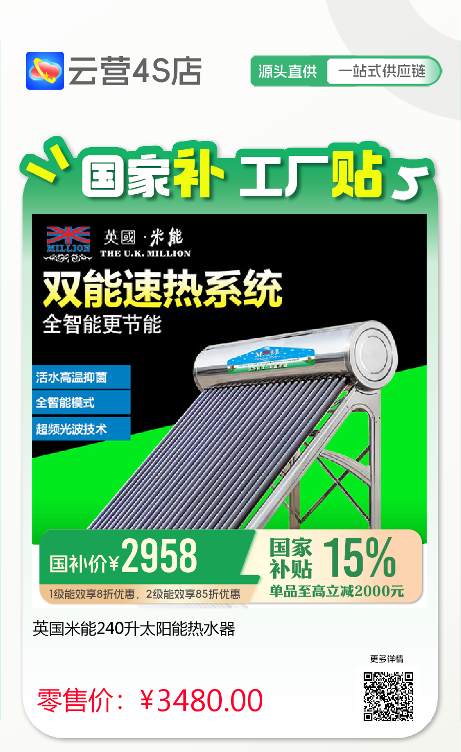 英国米能240升太阳能热水器
