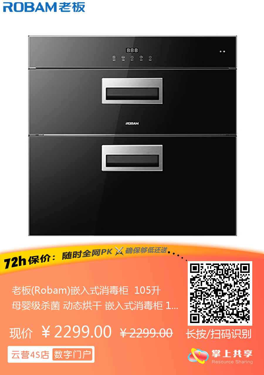 老板(Robam)嵌入式消毒柜 105升 母婴级杀菌 动态烘干 嵌入式消毒柜 12套 ZTD105B-XB819