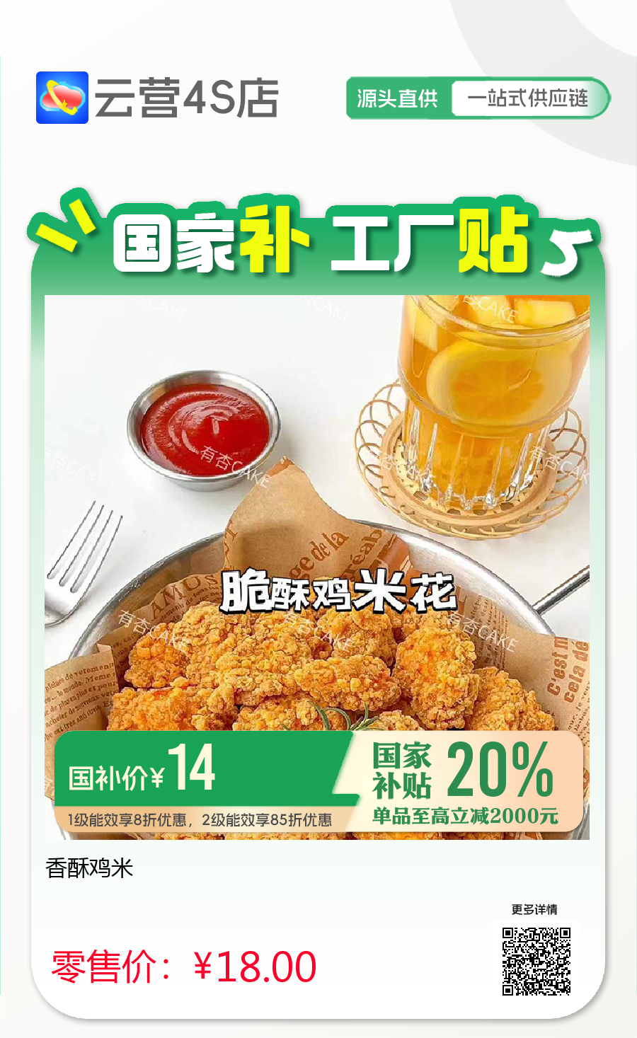脆脆鸡米搭配青芥末酱,是快乐碳水的味道。