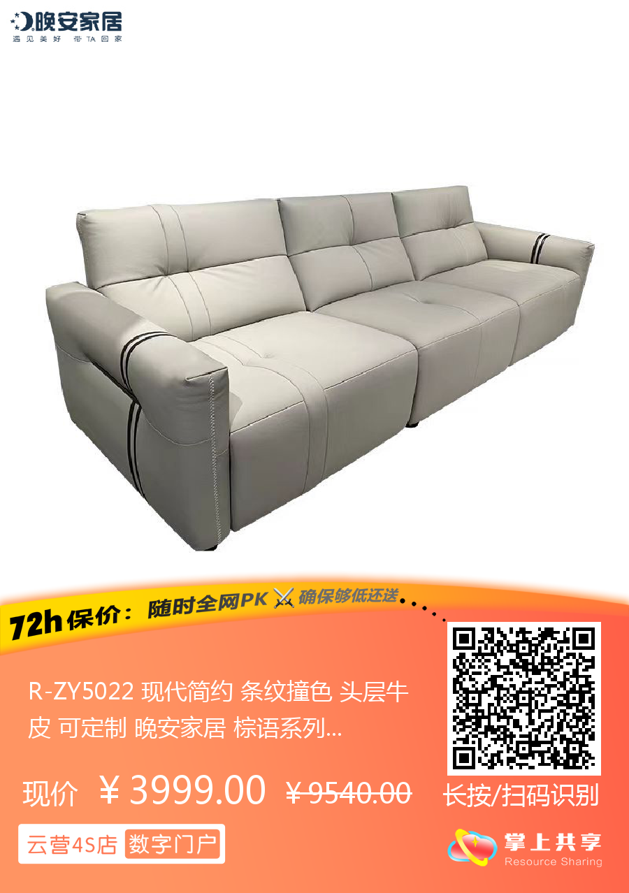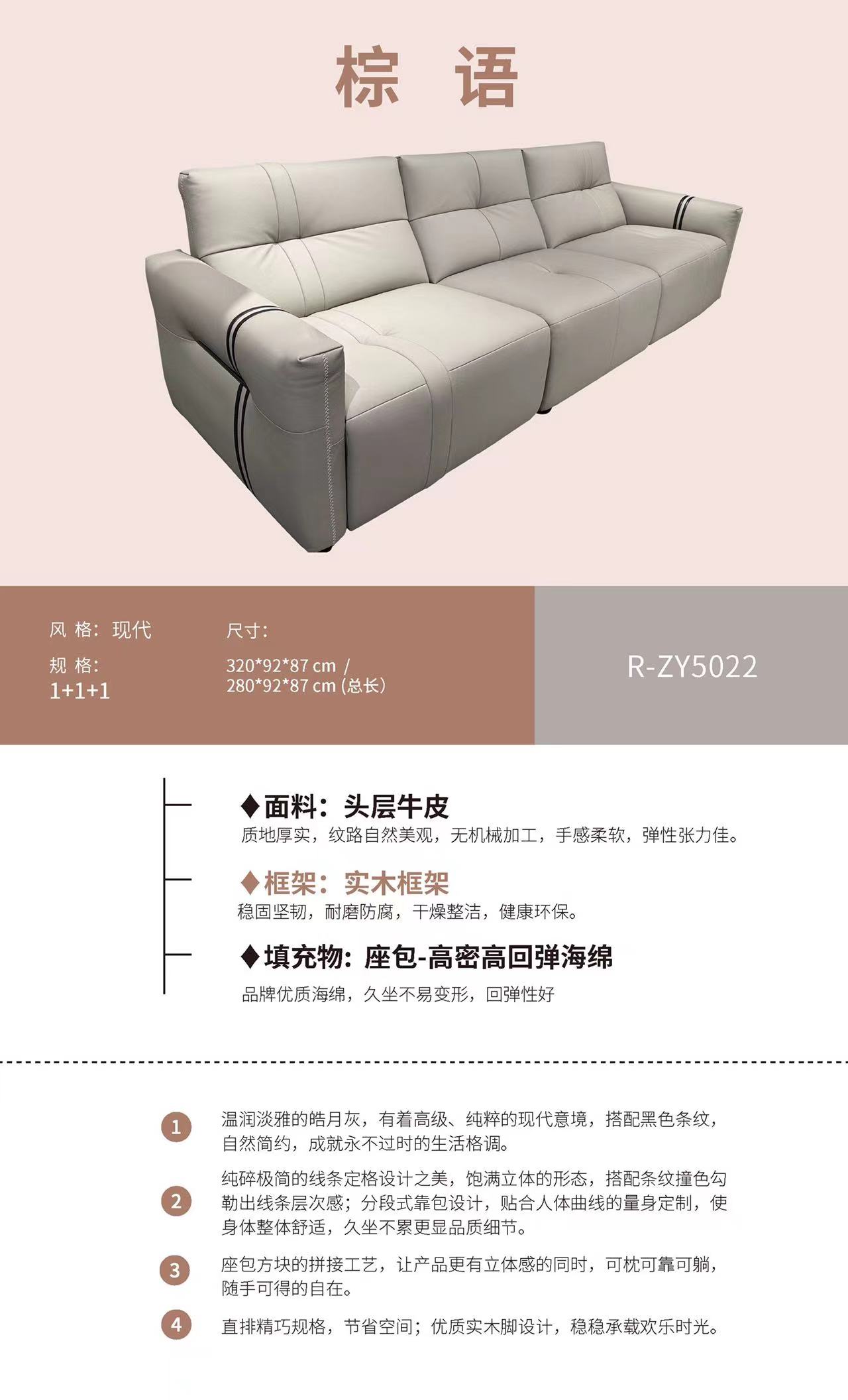 R-ZY5022 现代简约 条纹撞色 头层牛皮 可定制 晚安家居 棕语系列