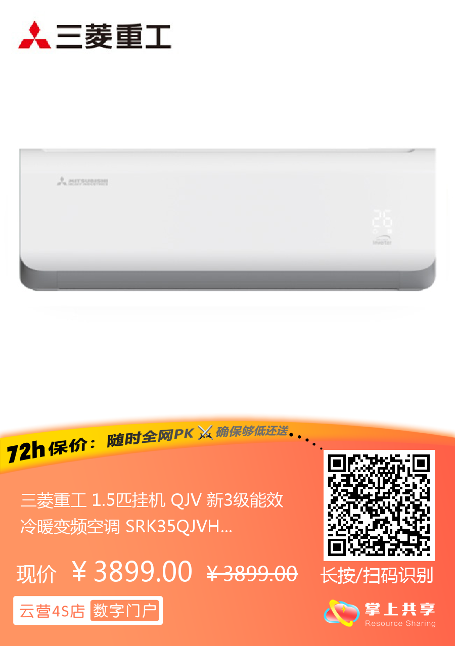 三菱重工 1.5匹挂机 QJV 新3级能效 冷暖变频空调 SRK35QJVH