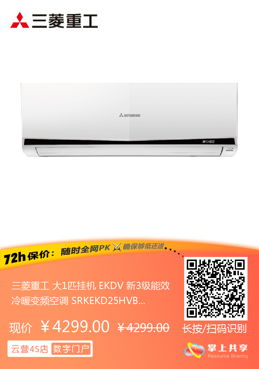 三菱重工 大1匹挂机 EKDV 新3级能效 冷暖变频空调 SRKEKD25HVB