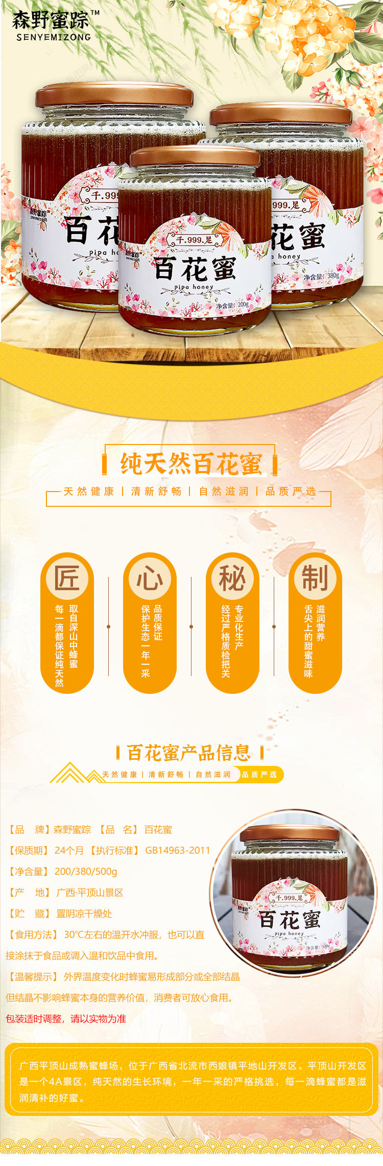 百花天然蜂蜜 380g 森野蜜踪 中华土蜜蜂 广西大容山森林生态放养 生态蜜源国际生产检测 上乘波美度 拉丝级纯蜜