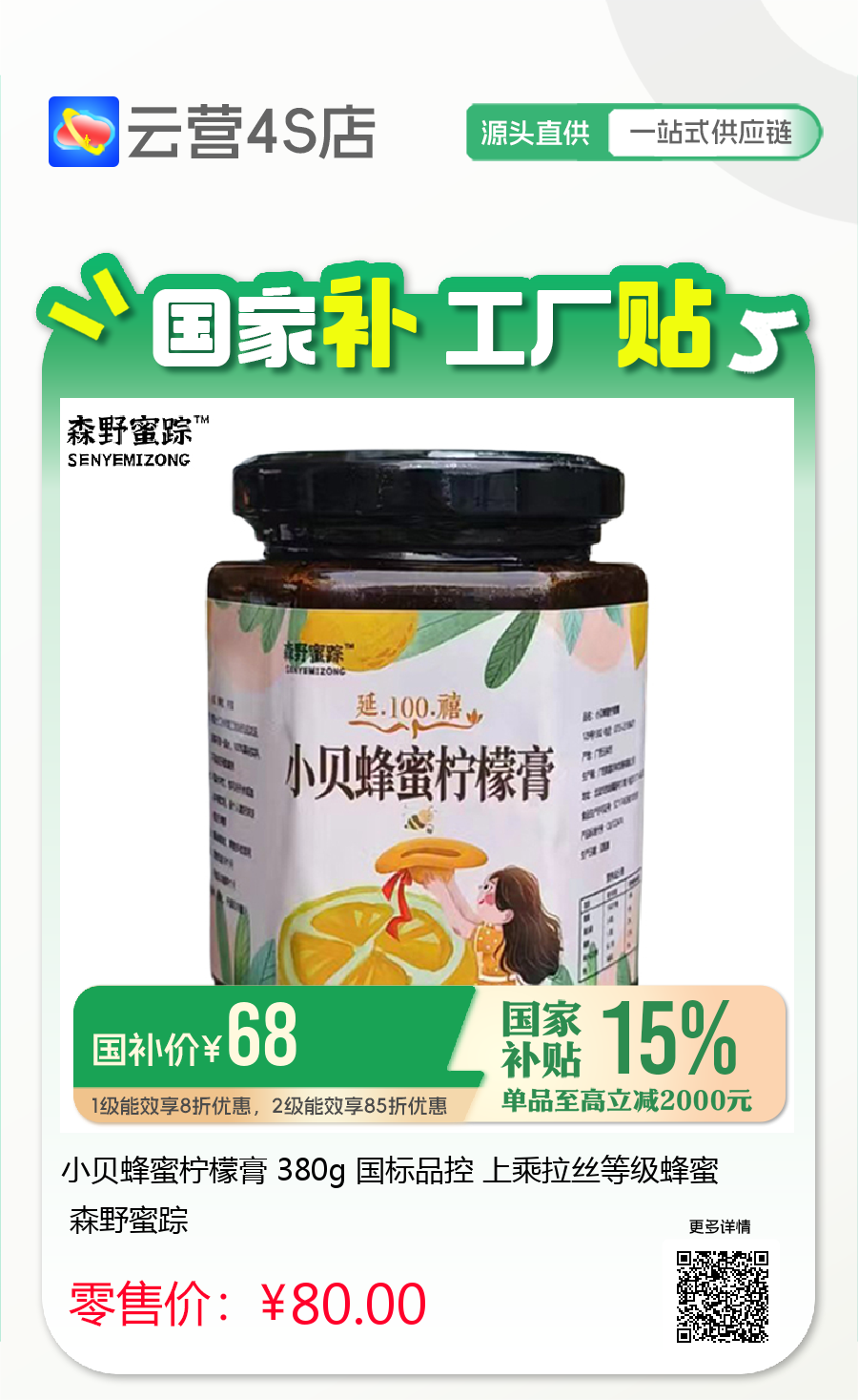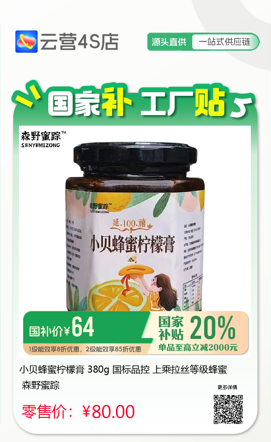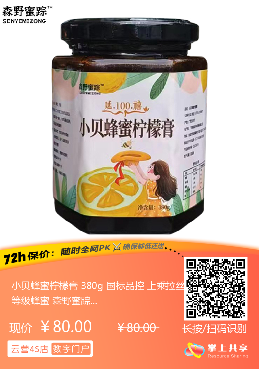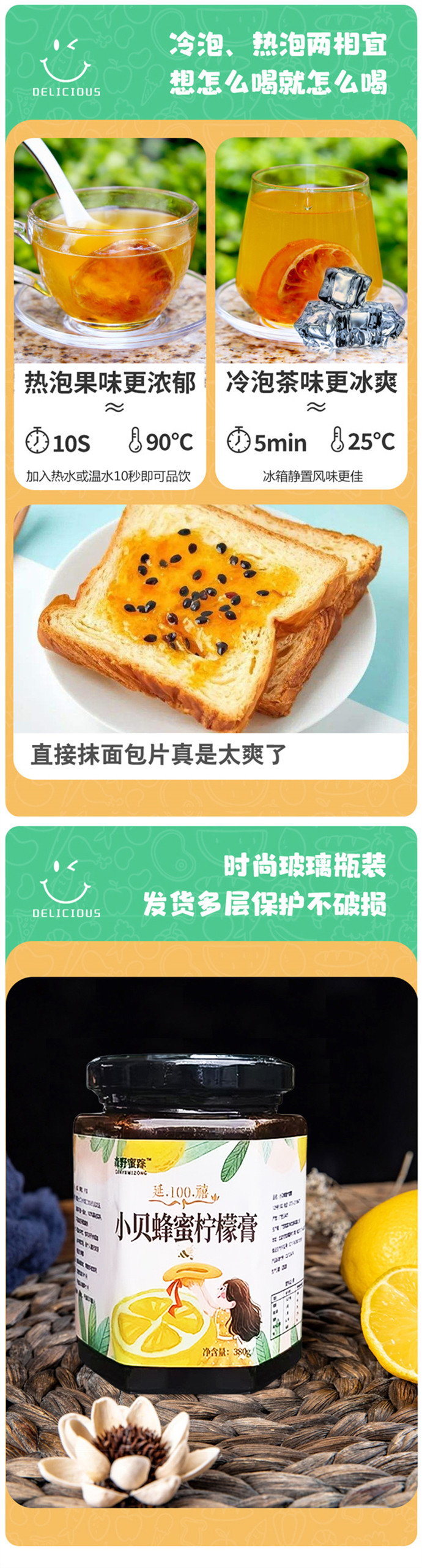 小贝蜂蜜柠檬膏 380g 国标品控 上乘拉丝等级蜂蜜 森野蜜踪