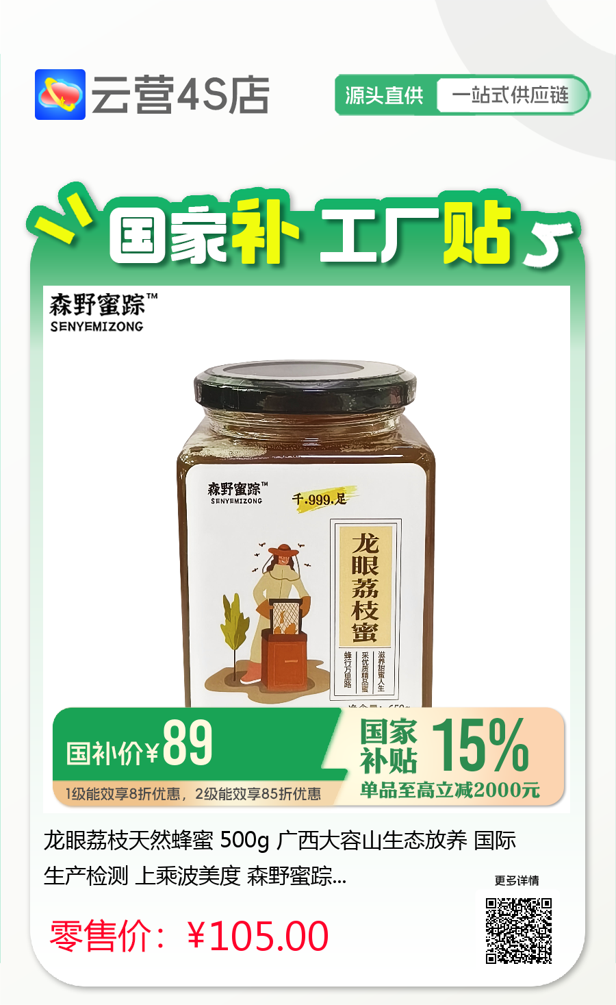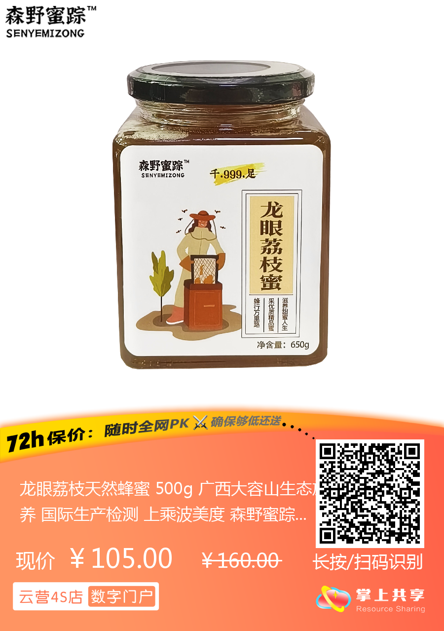 龙眼荔枝天然蜂蜜 500g 广西大容山生态放养 国际生产检测 上乘波美度 森野蜜踪