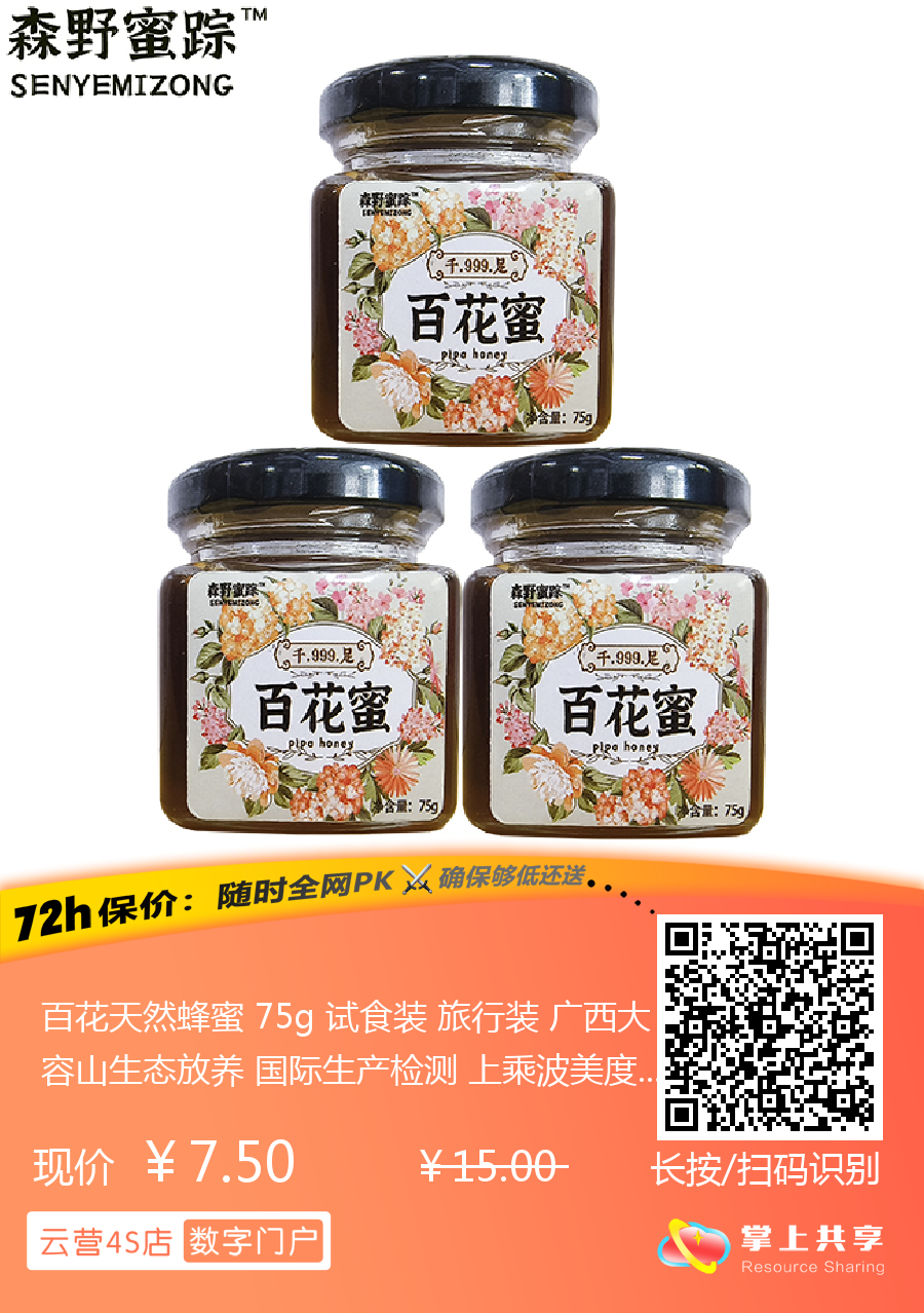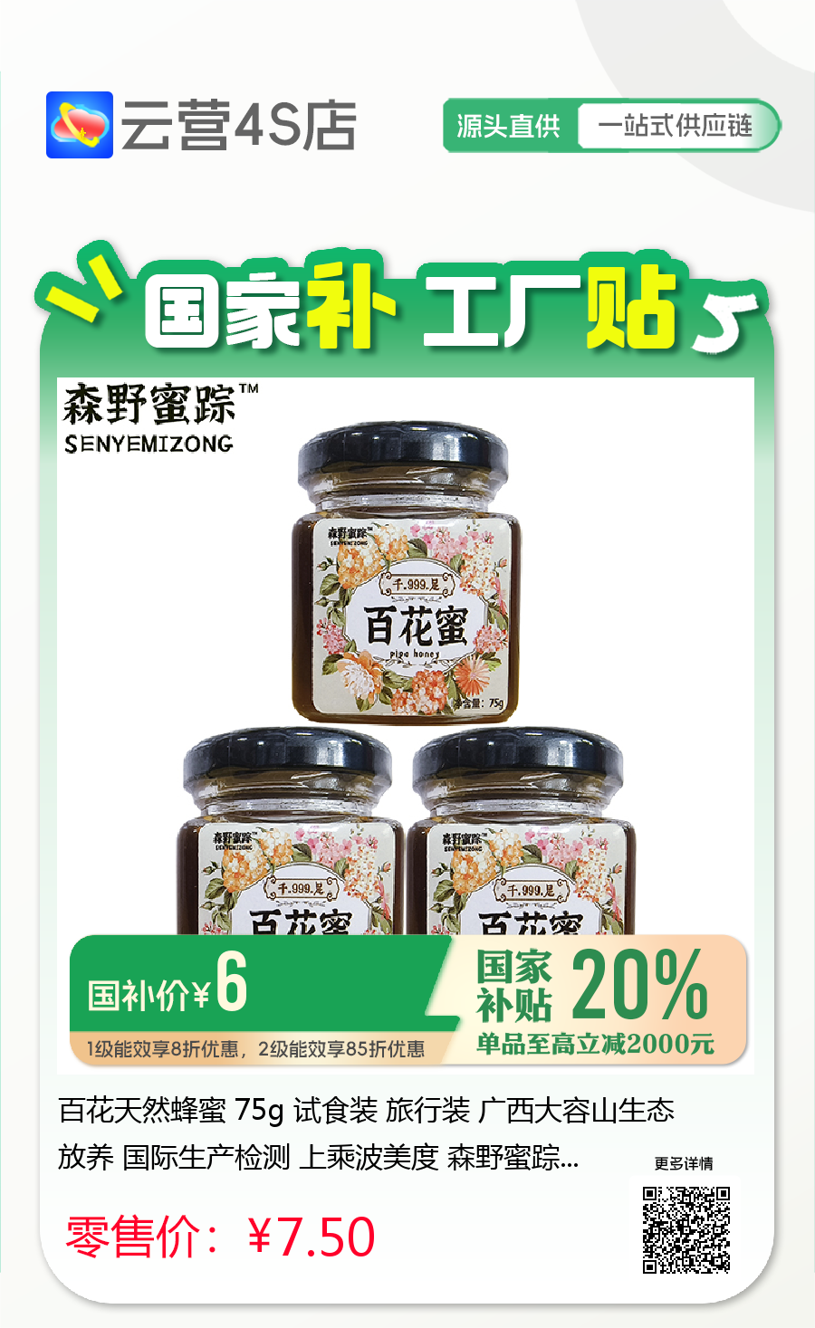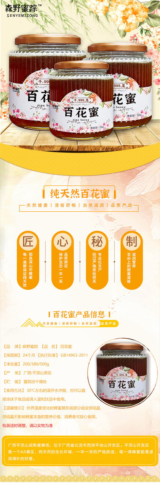 百花天然蜂蜜 75g 试食装 旅行装 广西大容山生态放养 国际生产检测 上乘波美度 森野蜜踪