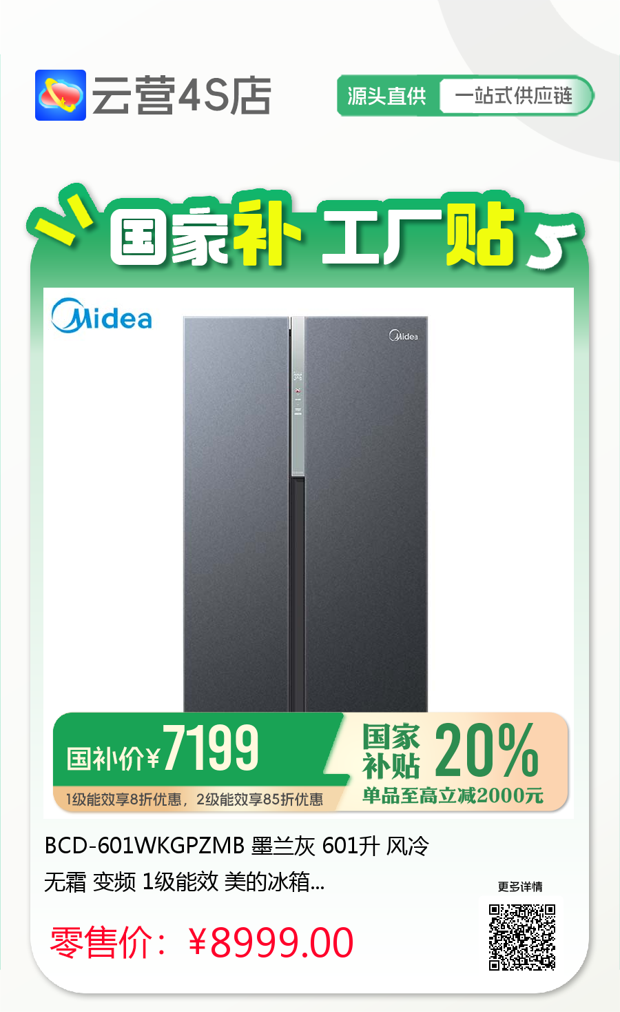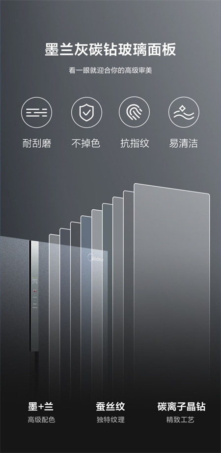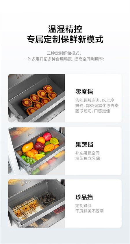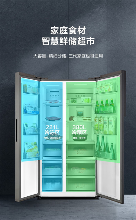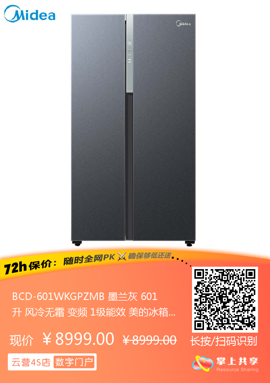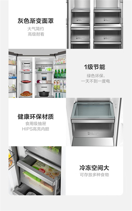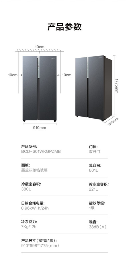 BCD-601WKGPZMB 墨兰灰 601升 风冷无霜 变频 1级能效 美的冰箱