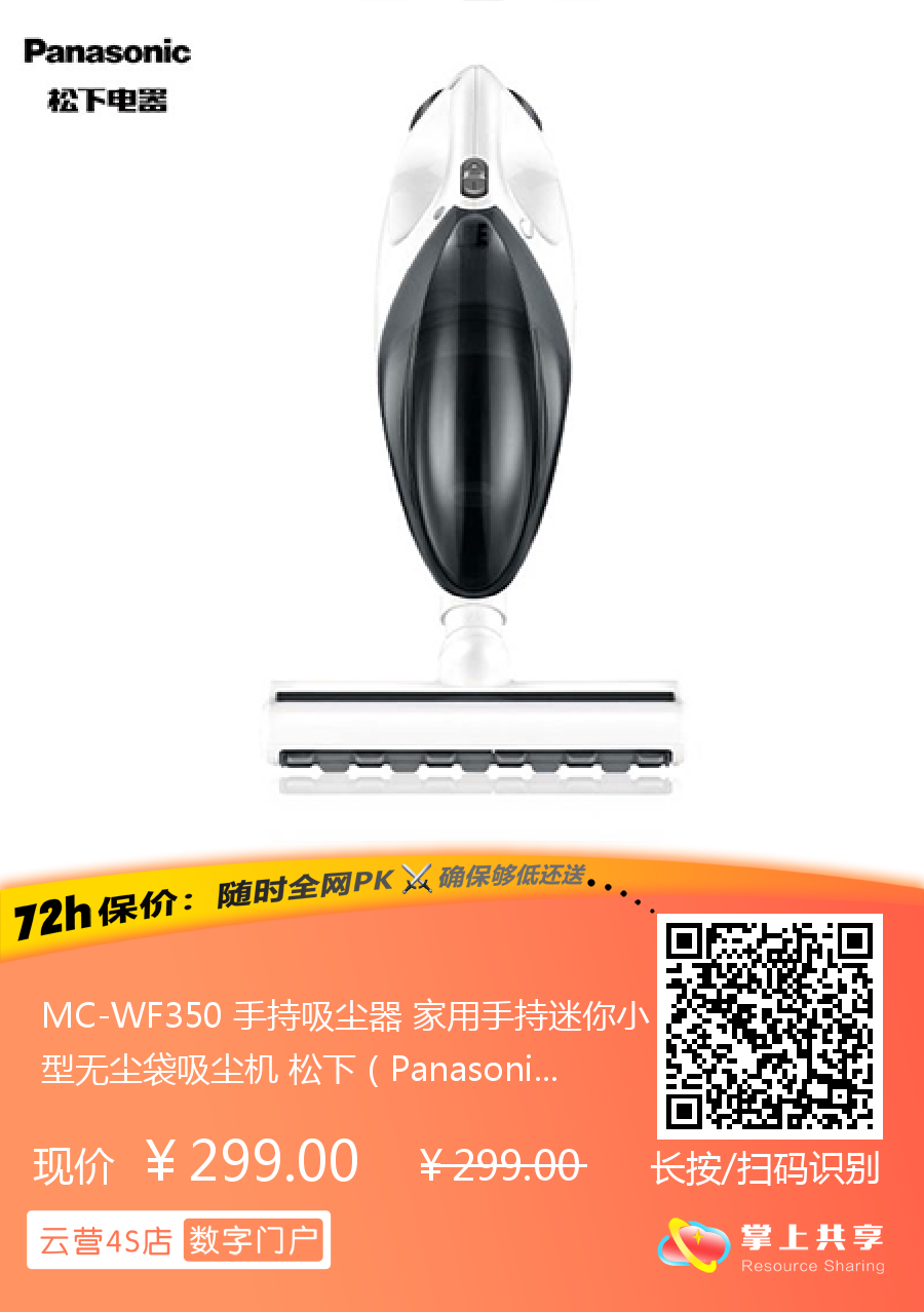MC-WF350 手持吸尘器 家用手持迷你小型无尘袋吸尘机 松下(Panasonic)
