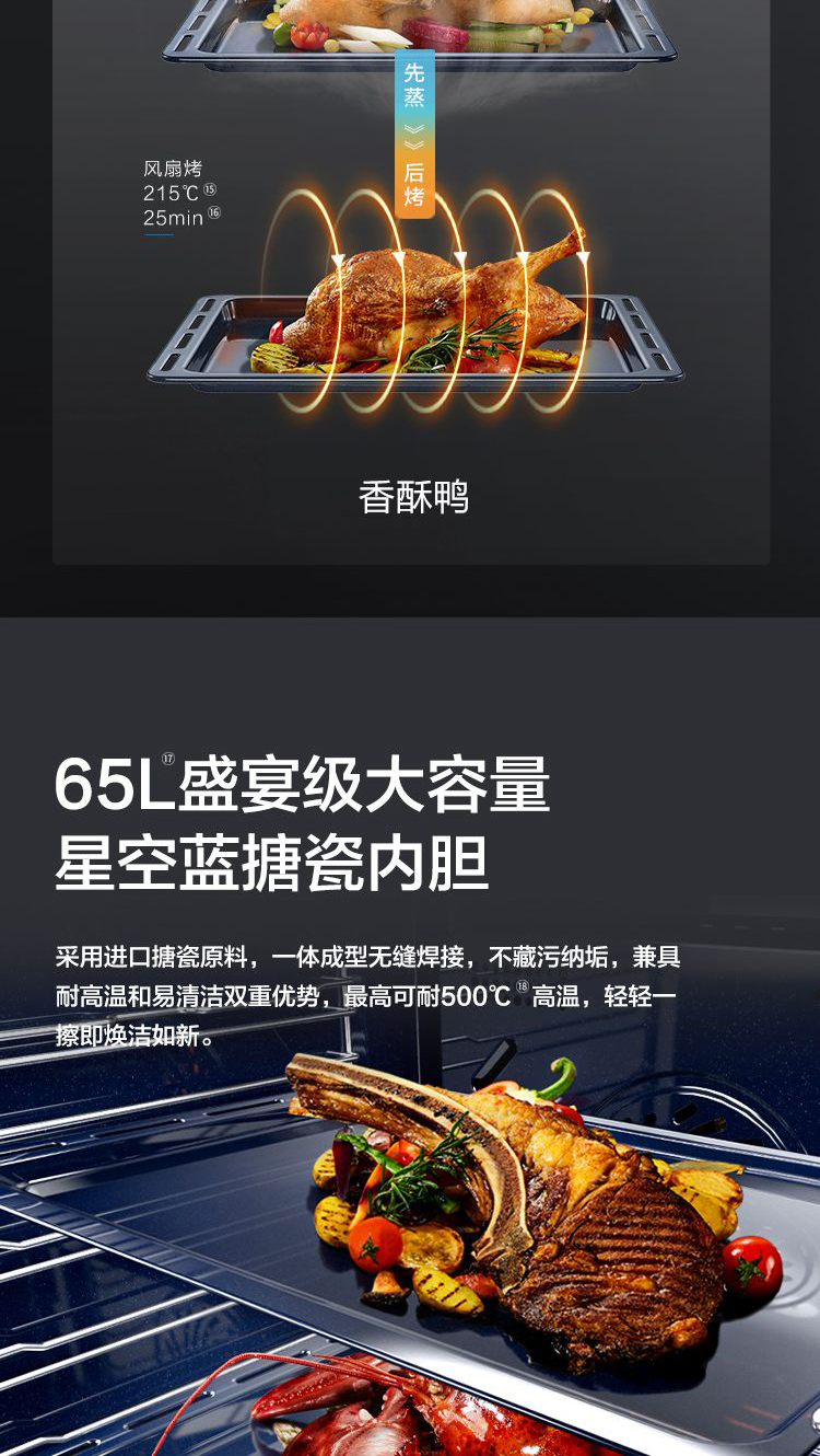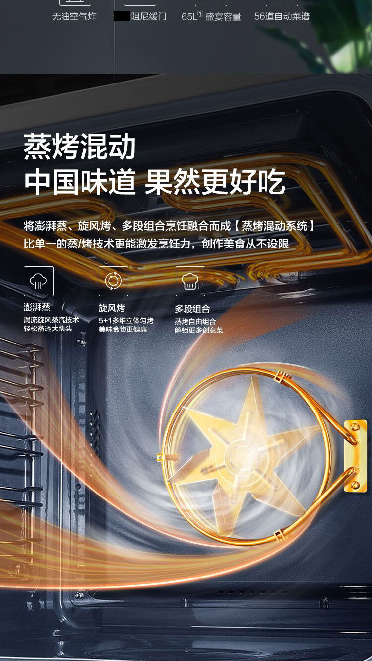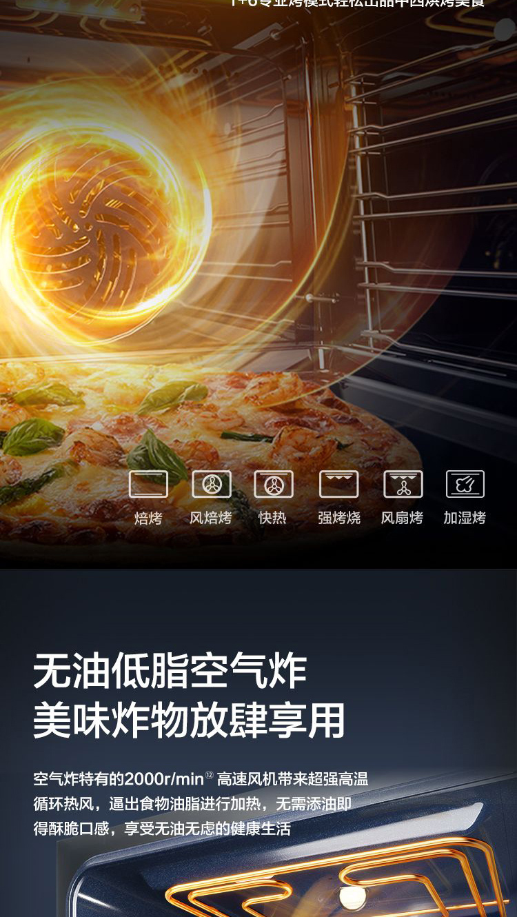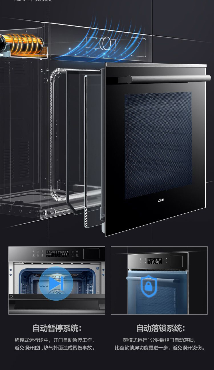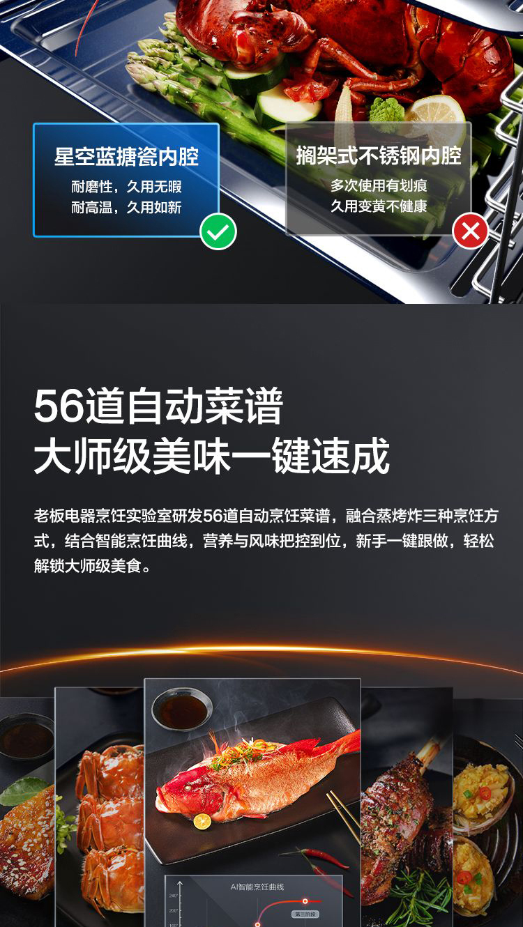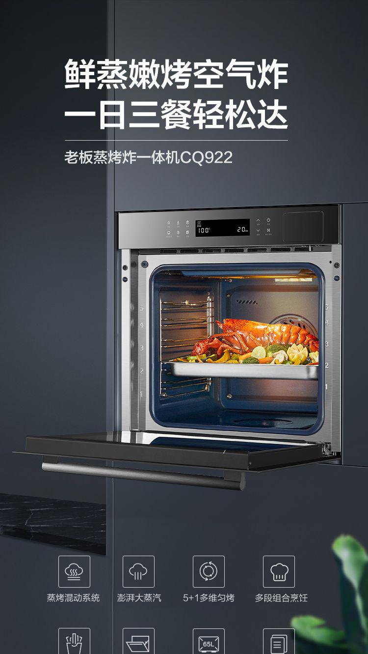 老板(Robam)无油低脂空气炸烤箱 65L大容量 嵌入式 56道自动菜谱 KZQS-65-CQ922