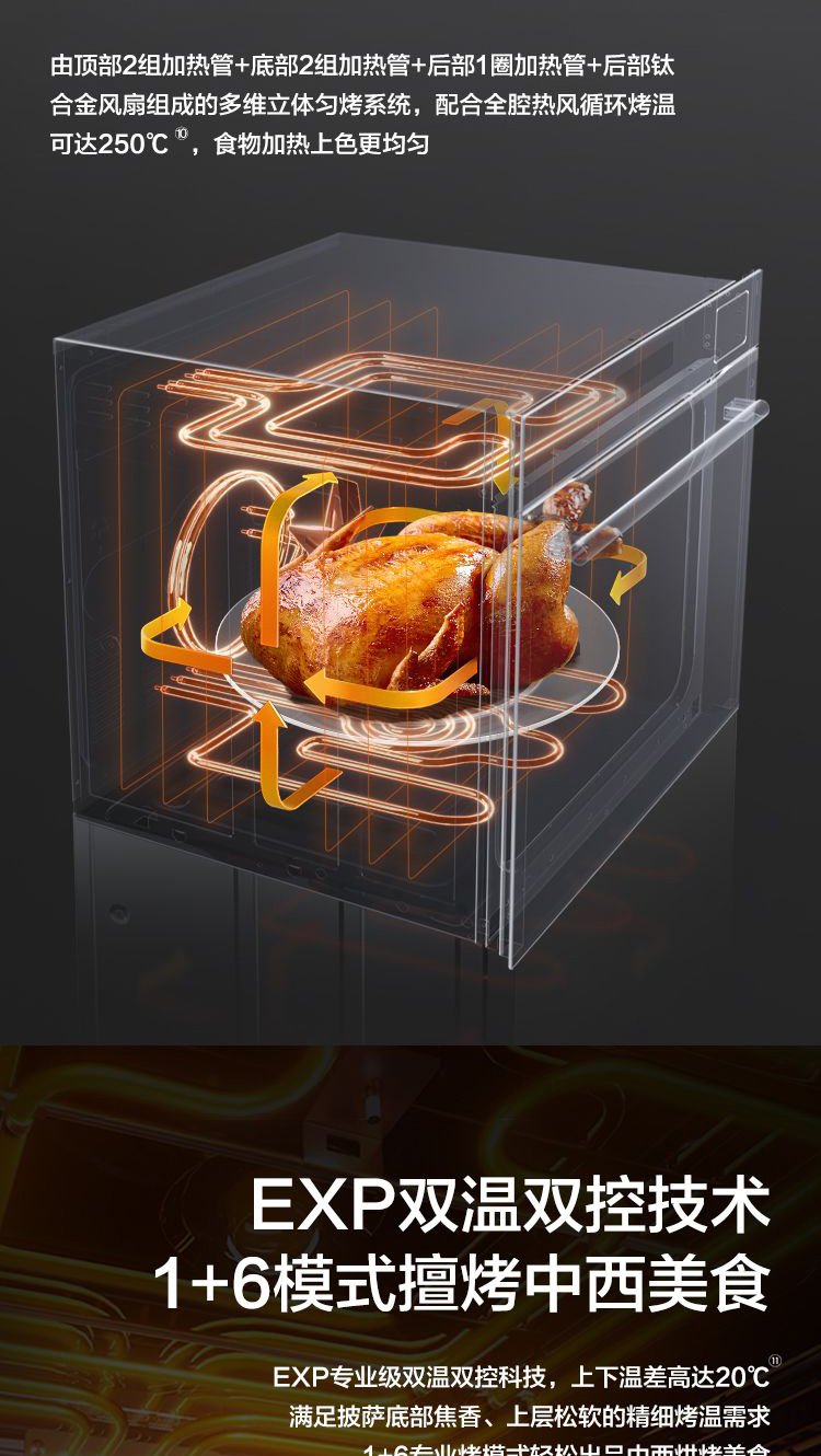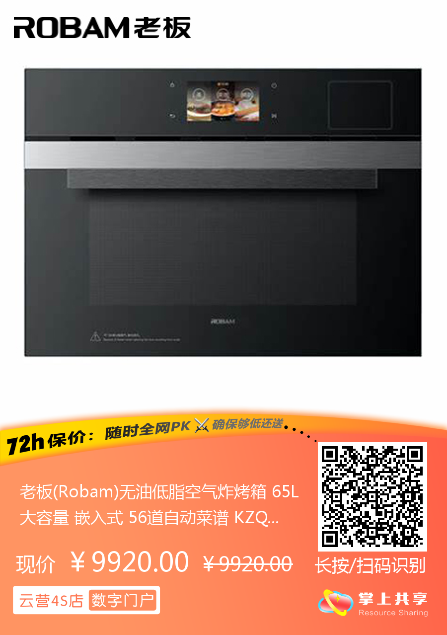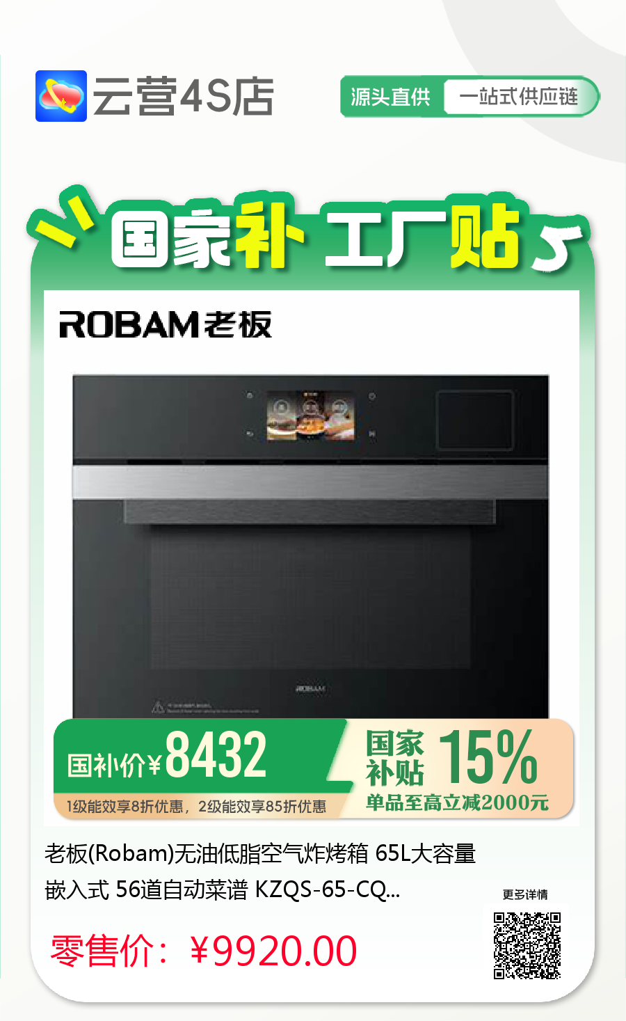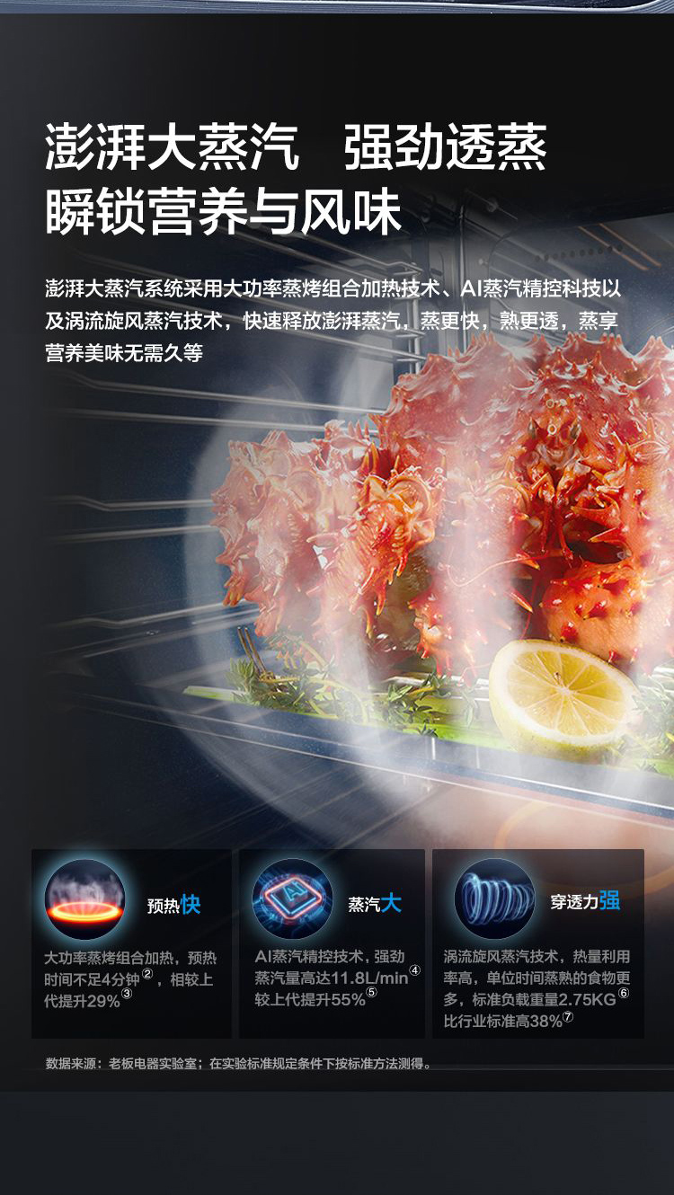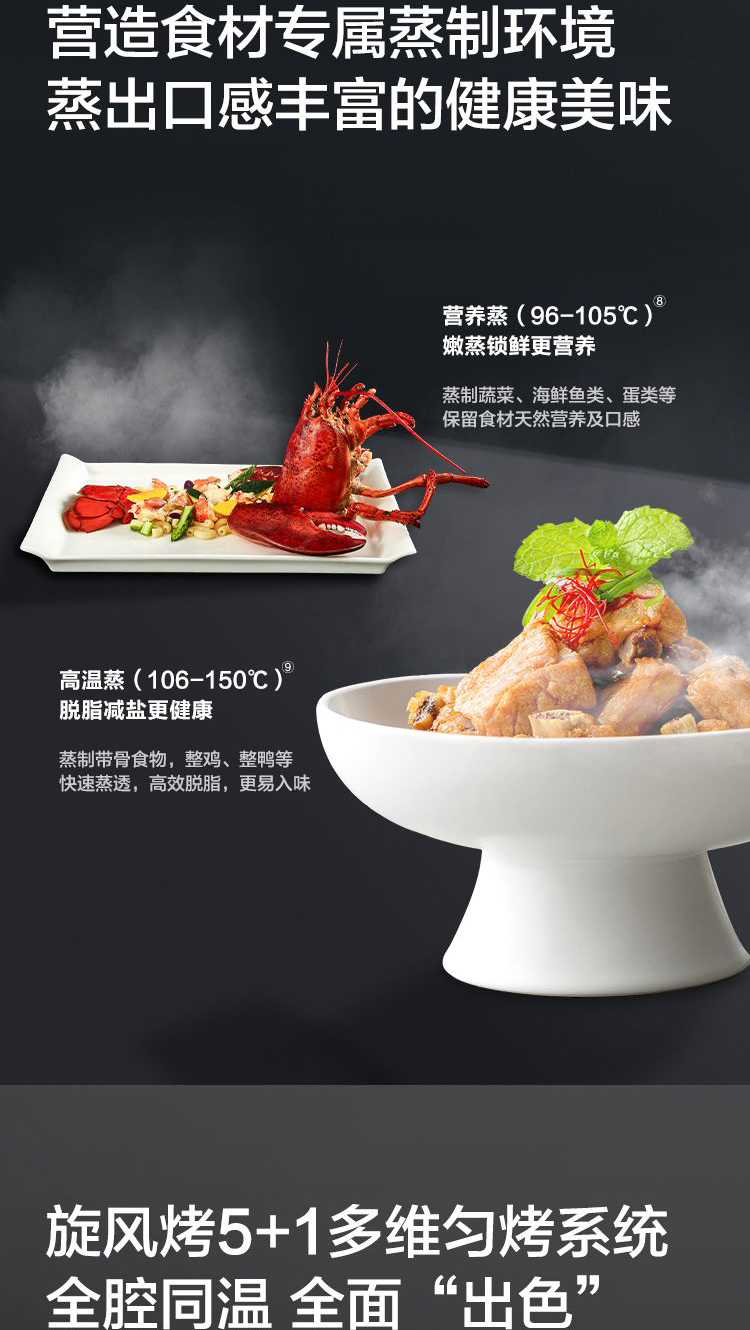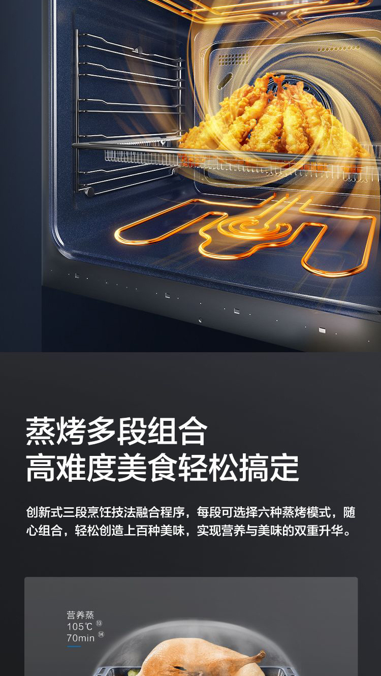 老板(Robam)无油低脂空气炸烤箱 65L大容量 嵌入式 56道自动菜谱 KZQS-65-CQ922