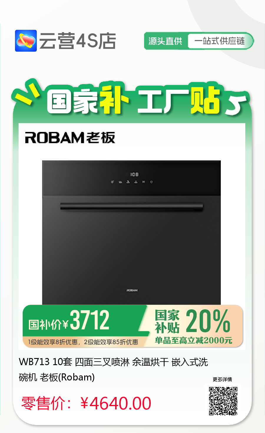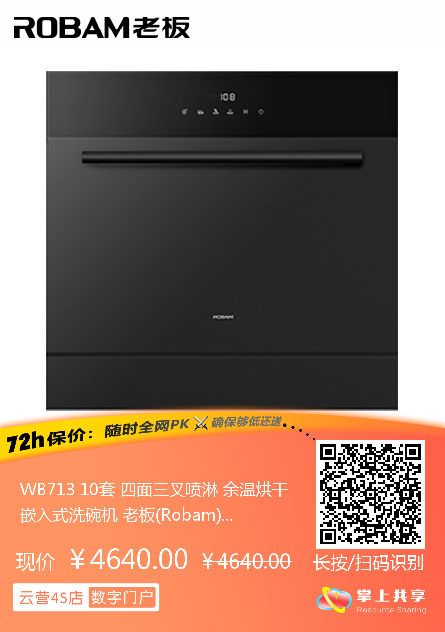 WB713 10套 四面三叉喷淋 余温烘干 嵌入式洗碗机 老板(Robam)