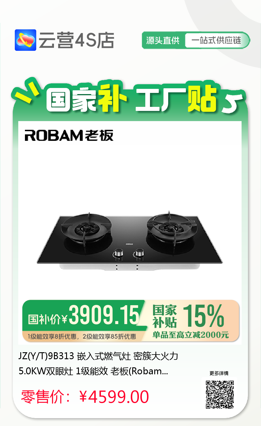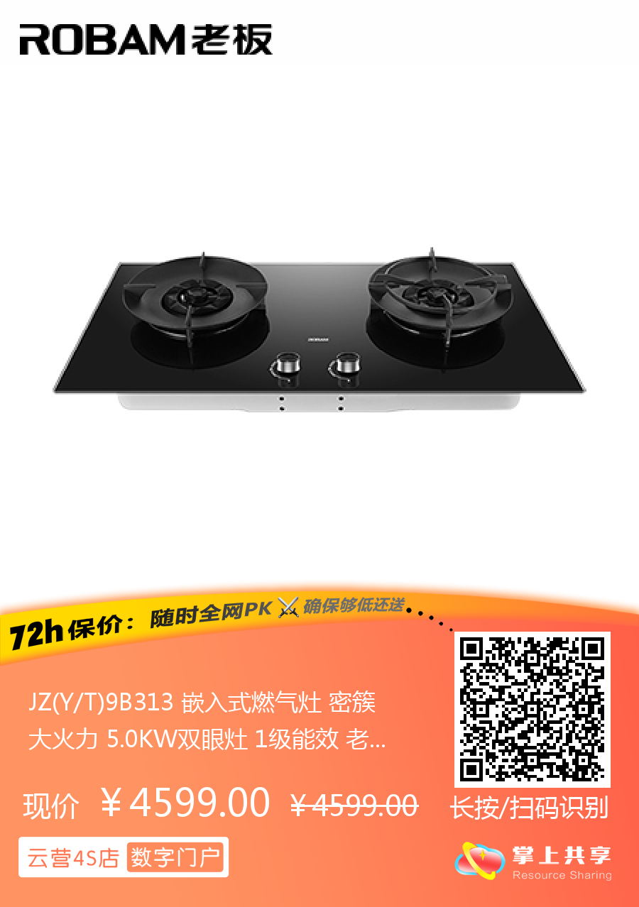 JZ(Y/T)9B313 嵌入式燃气灶 密簇大火力 5.0KW双眼灶 1级能效 老板(Robam)