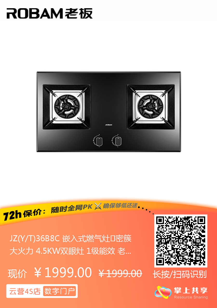 JZ(Y/T)36B8C 嵌入式燃气灶 密簇大火力 4.5KW双眼灶 1级能效 老板(Robam)