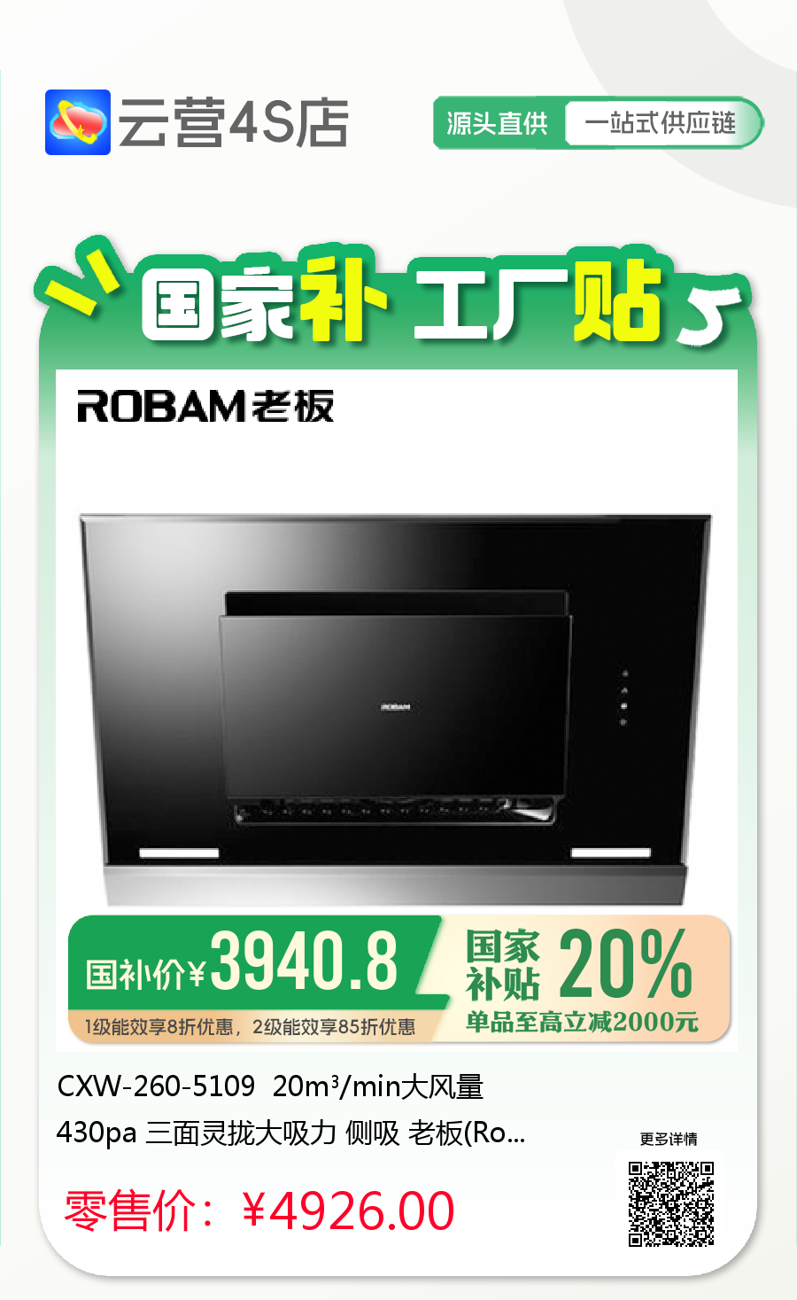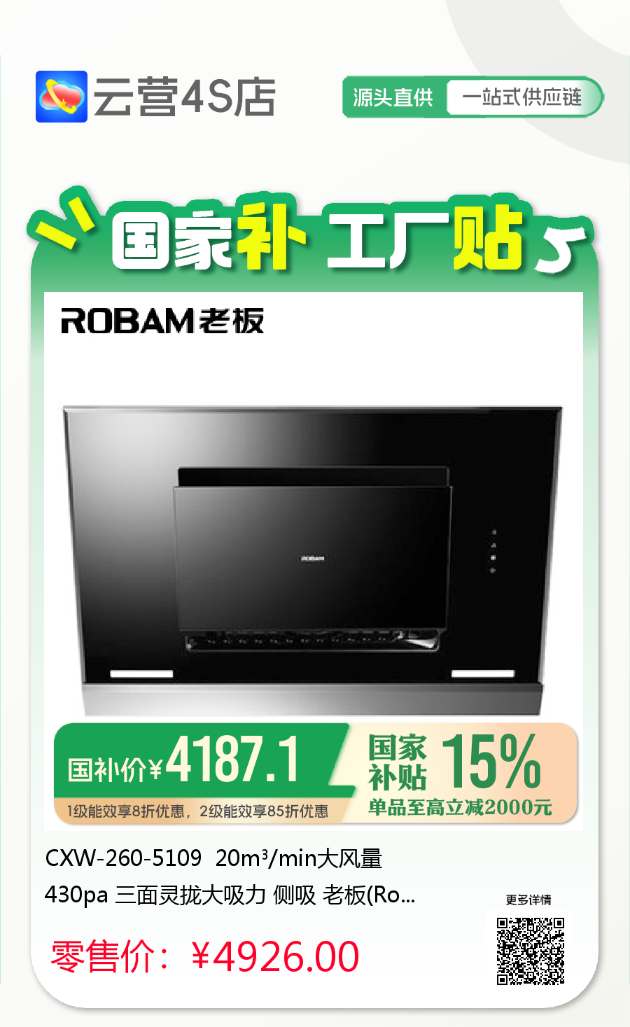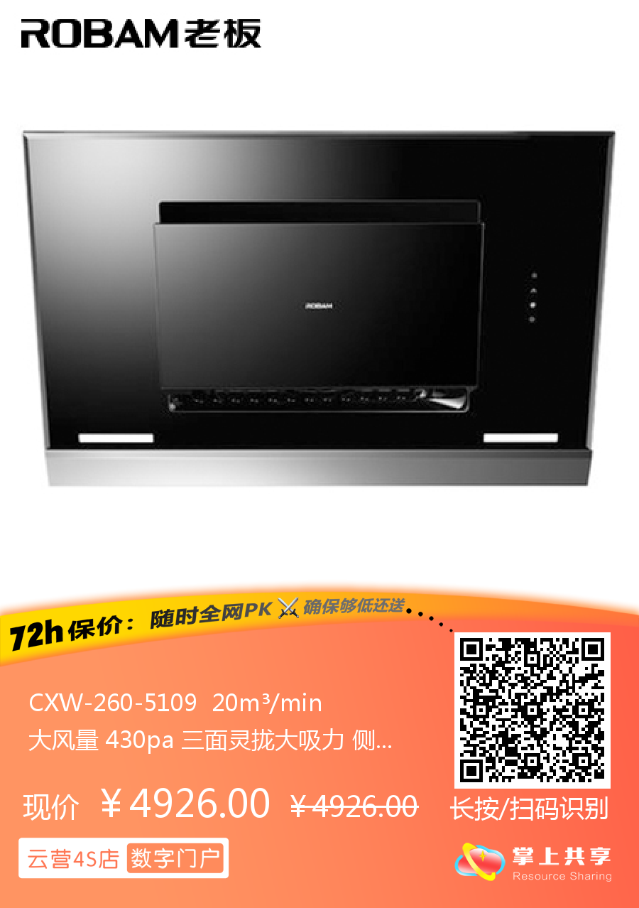CXW-260-5109 20m³/min大风量 430pa 三面灵拢大吸力 侧吸 老板(Robam)