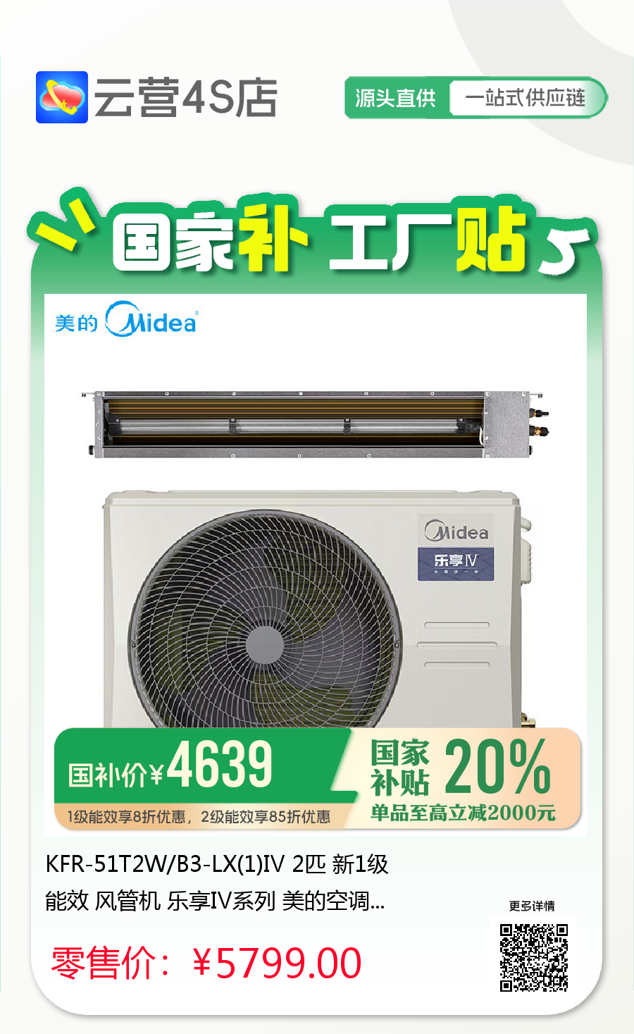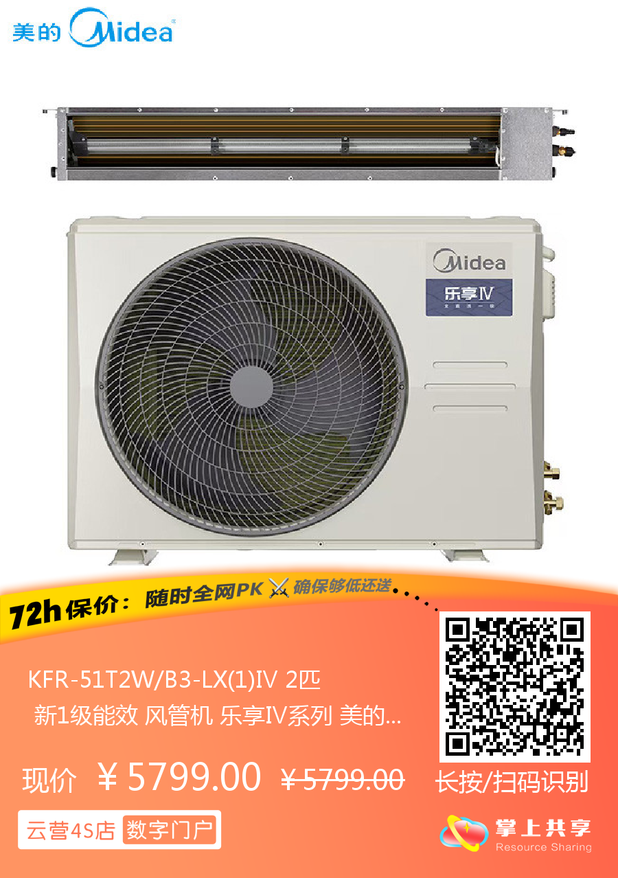 KFR-51T2W/B3-LX(1)Ⅳ 2匹 新1级能效 风管机 乐享Ⅳ系列 美的空调