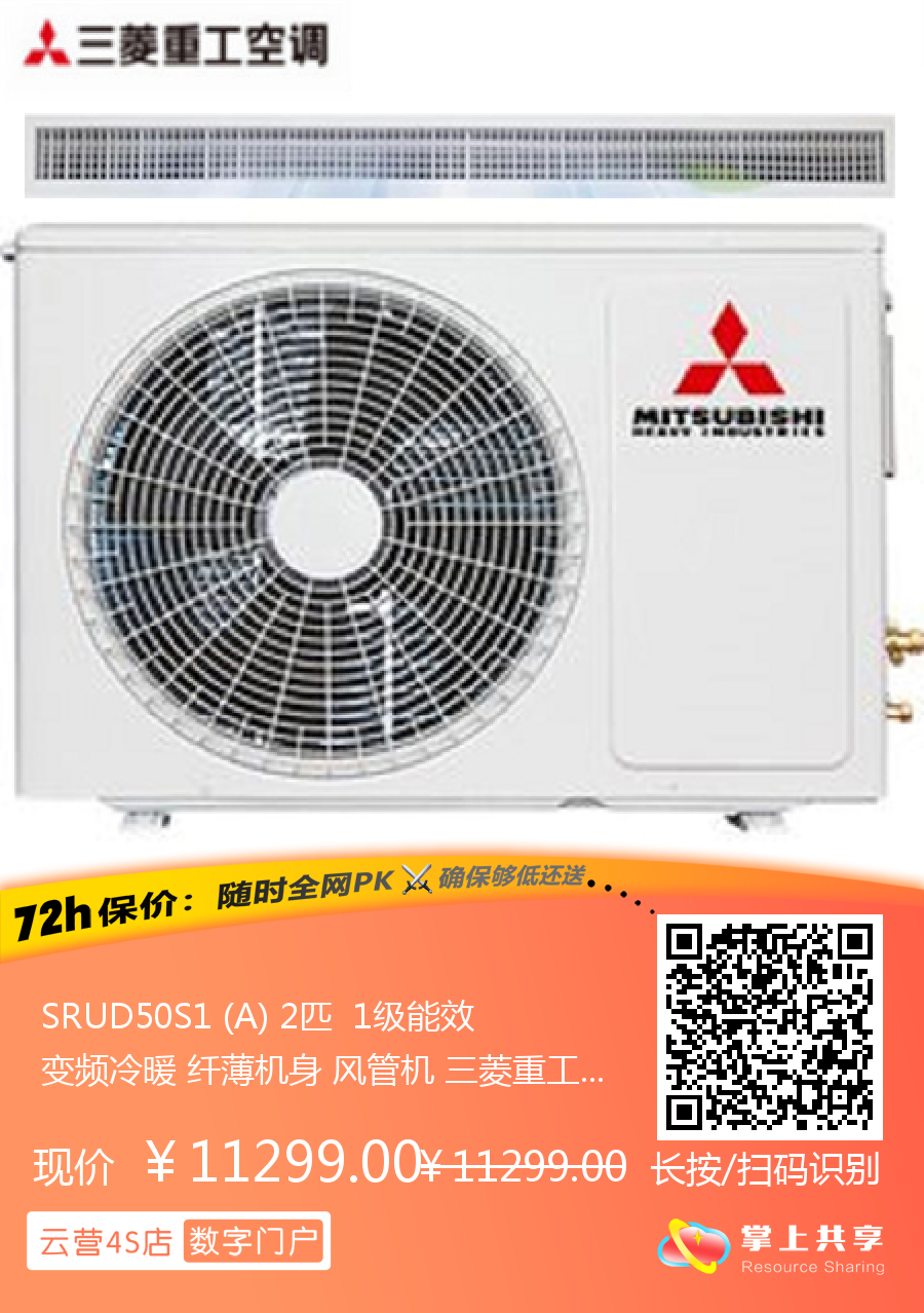 SRUD50S1 (A) 2匹 1级能效 变频冷暖 纤薄机身 风管机 三菱重工
