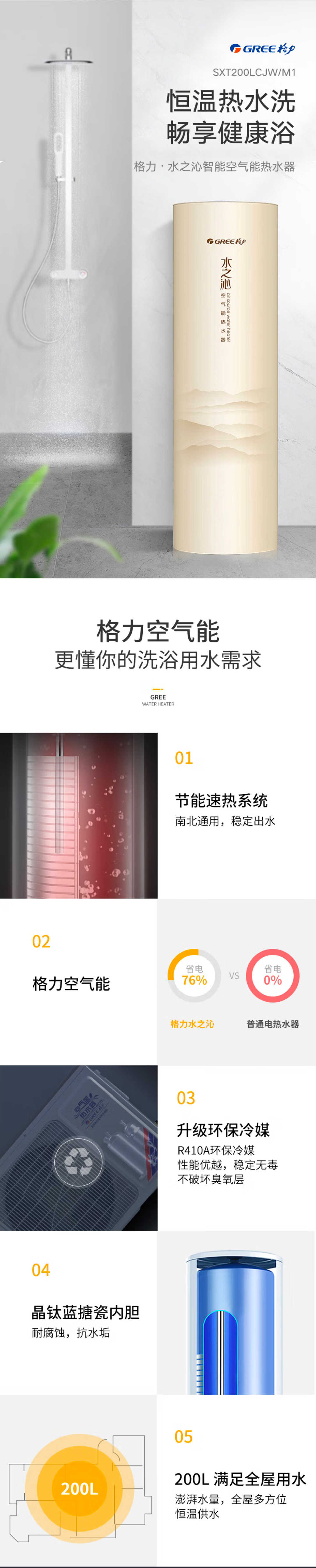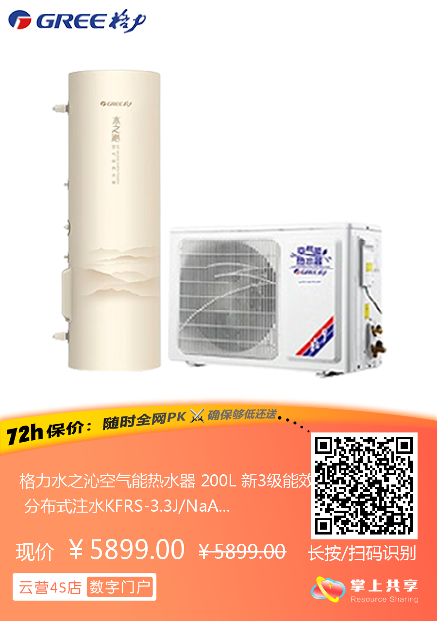 格力水之沁空气能热水器 200L 新3级能效 分布式注水KFRS-3.3J/NaA-3(配SXT200LCJW/R-3)