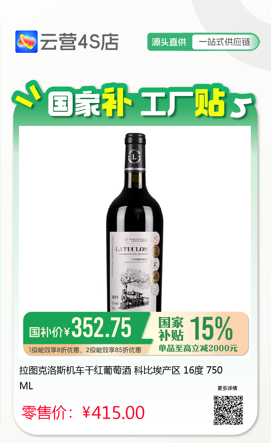 拉图克洛斯机车干红葡萄酒 科比埃产区 16度 750ML
