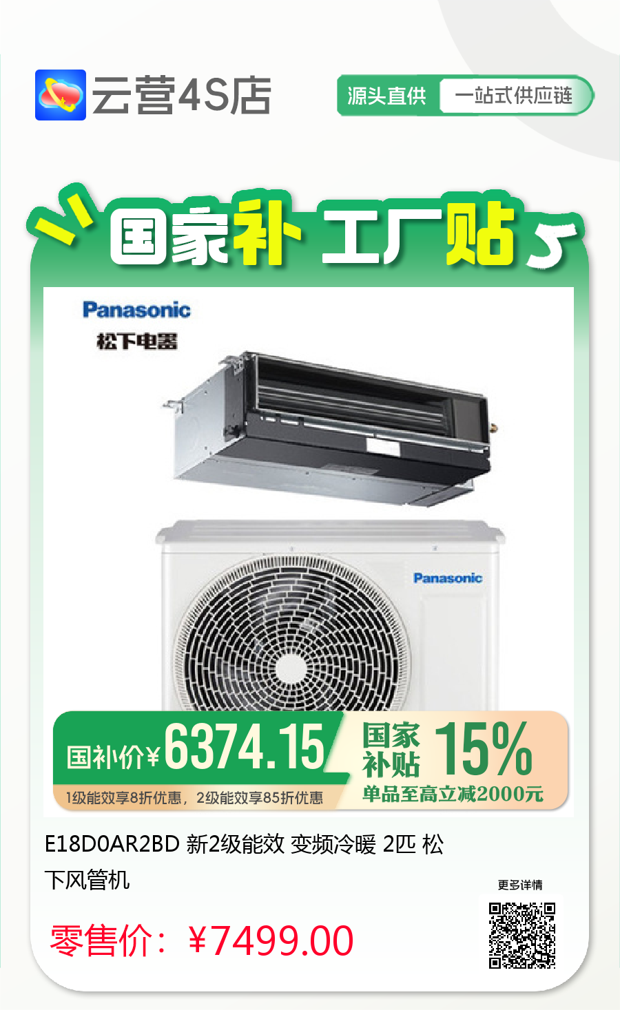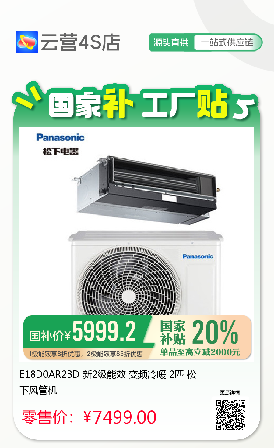 E18D0AR2BD 新2级能效 变频冷暖 2匹 松下风管机