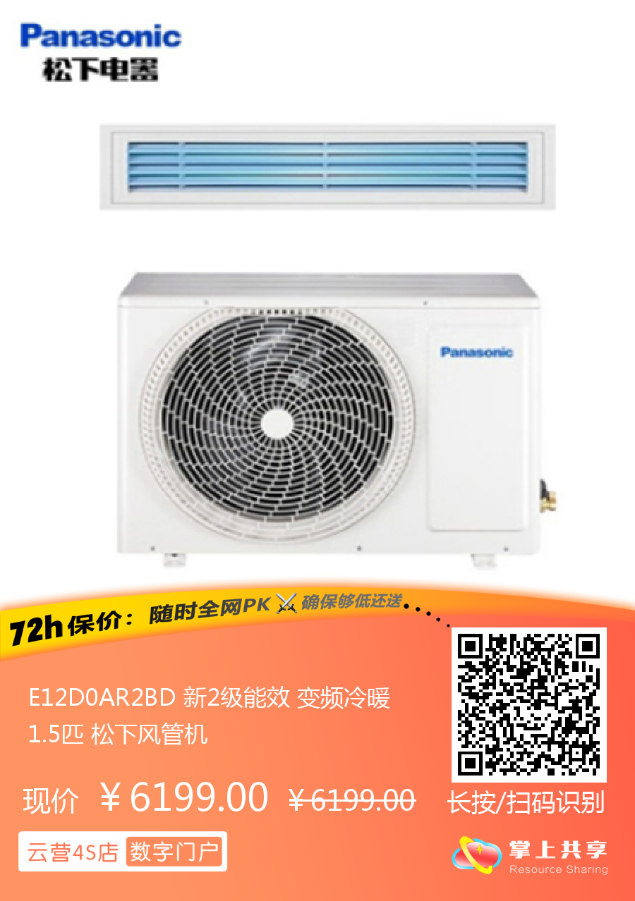 E12D0AR2BD 新2级能效 变频冷暖 1.5匹 松下风管机