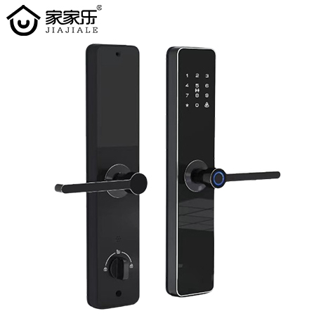 806 五合一功能 玻璃屏 西尚方案 明光指纹头 铝面板 精雕把手 家家乐智能锁