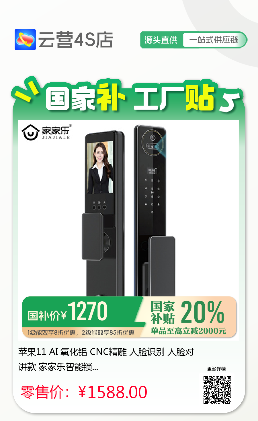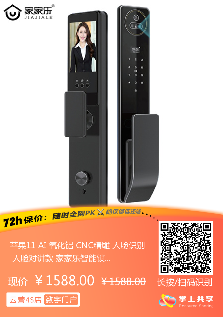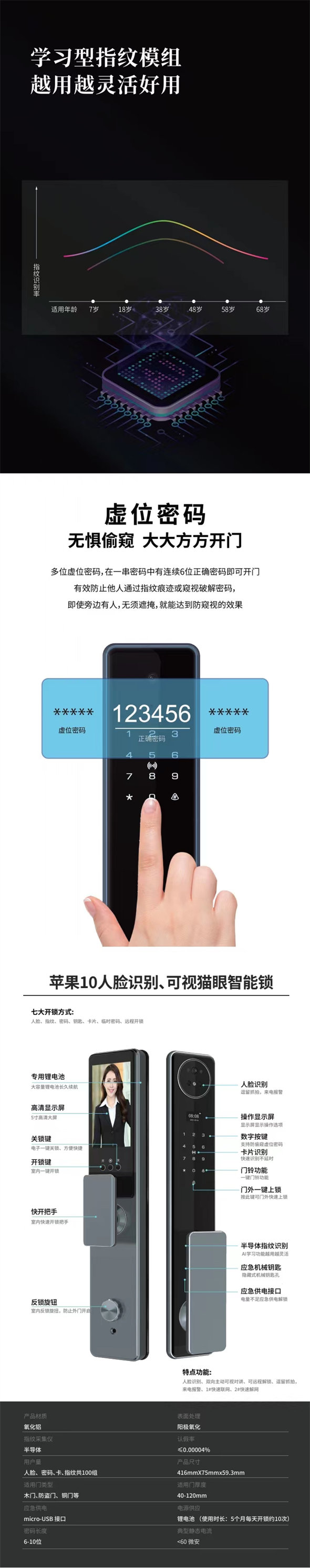 苹果11 AI 氧化铝 CNC精雕 人脸识别 人脸对讲款 家家乐智能锁