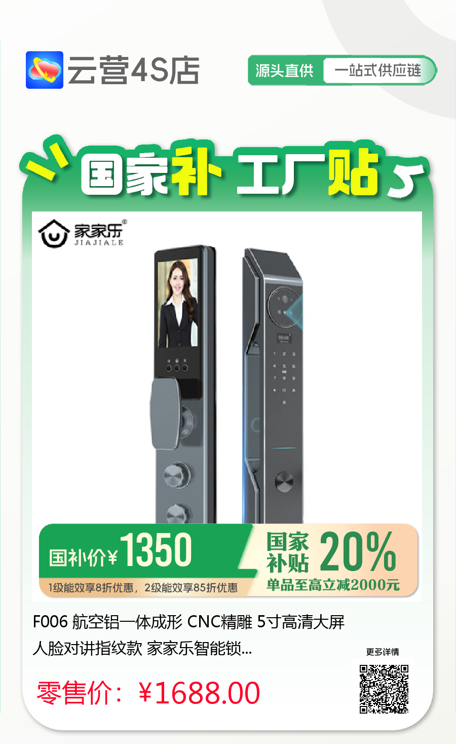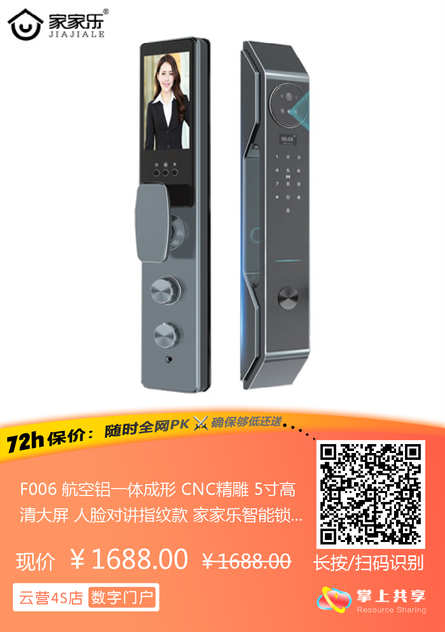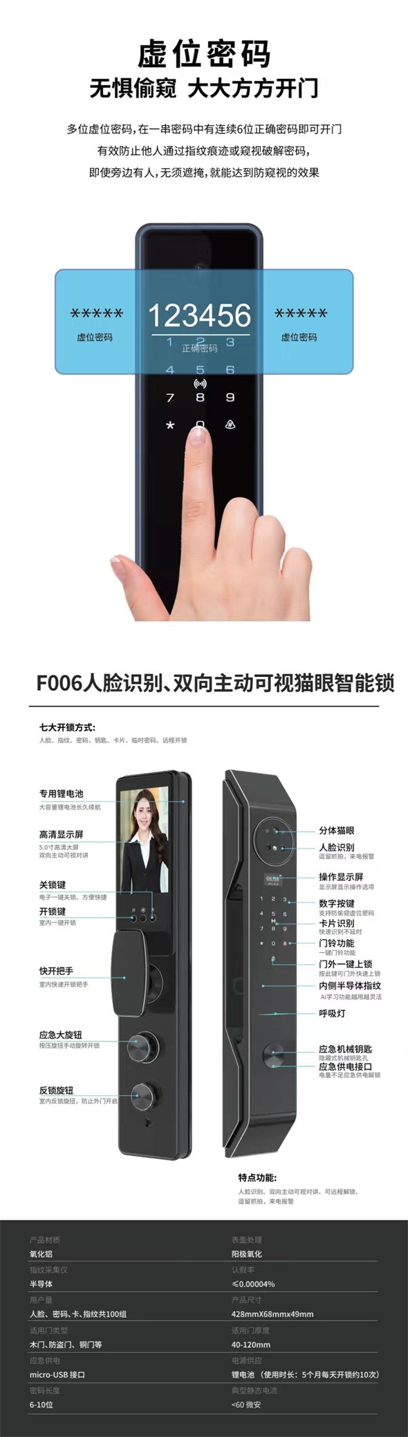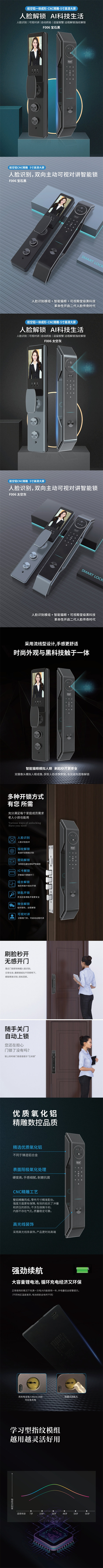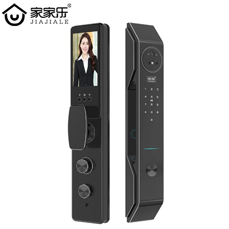 F006 航空铝一体成形 CNC精雕 5寸高清大屏 人脸对讲指纹款 家家乐智能锁