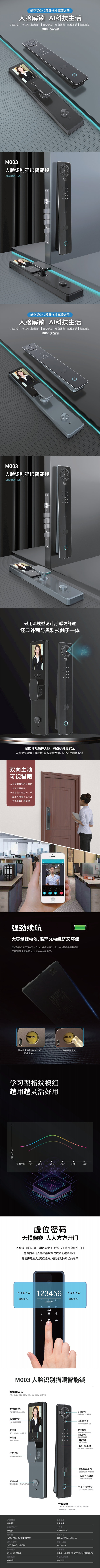 M003 航空铝 CNC精雕 5寸高清大屏 人脸猫眼款 家家乐智能锁
