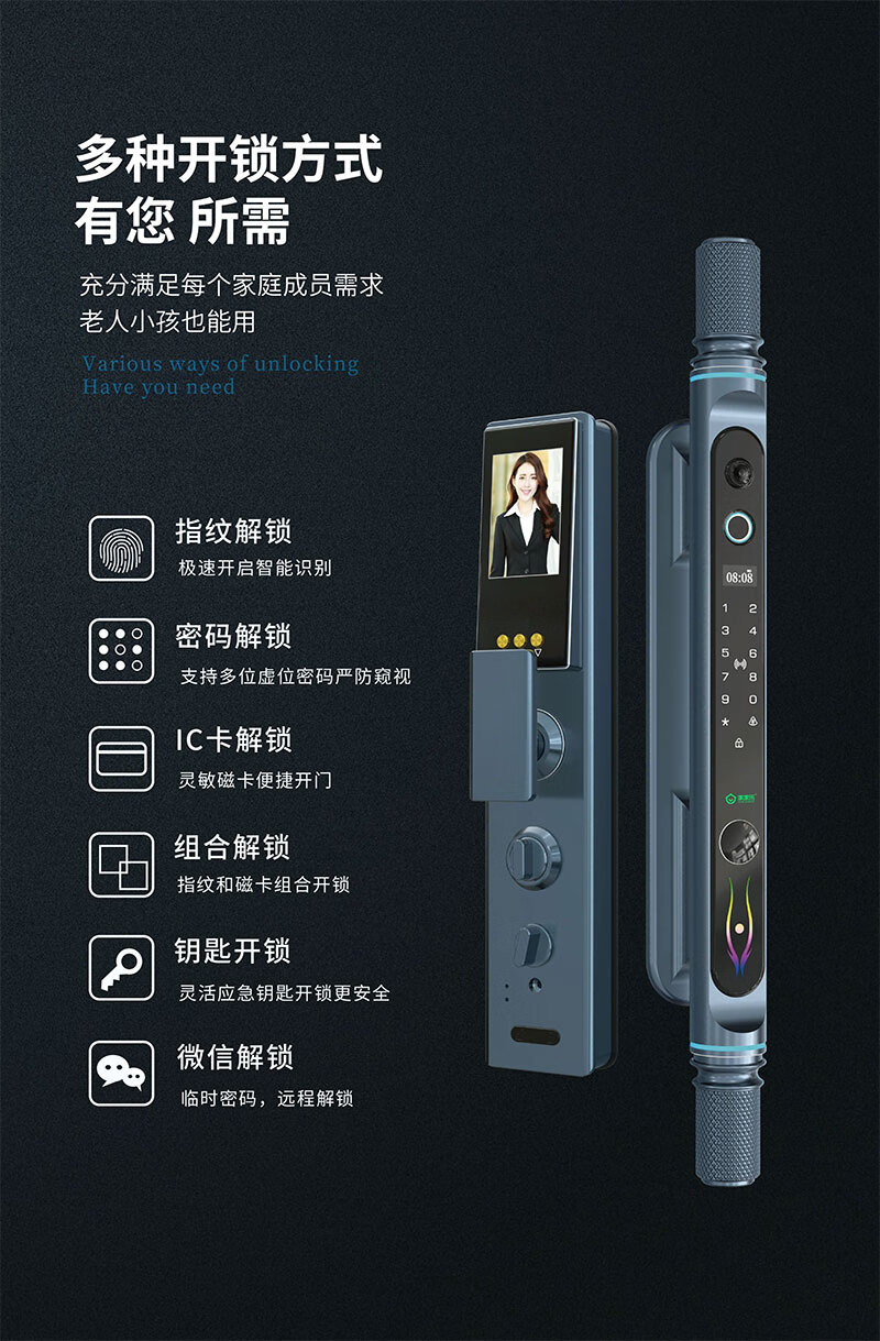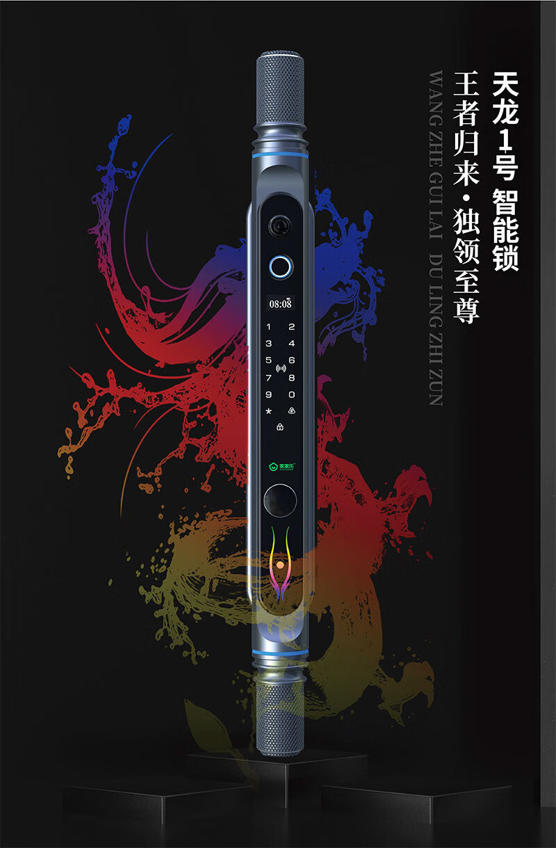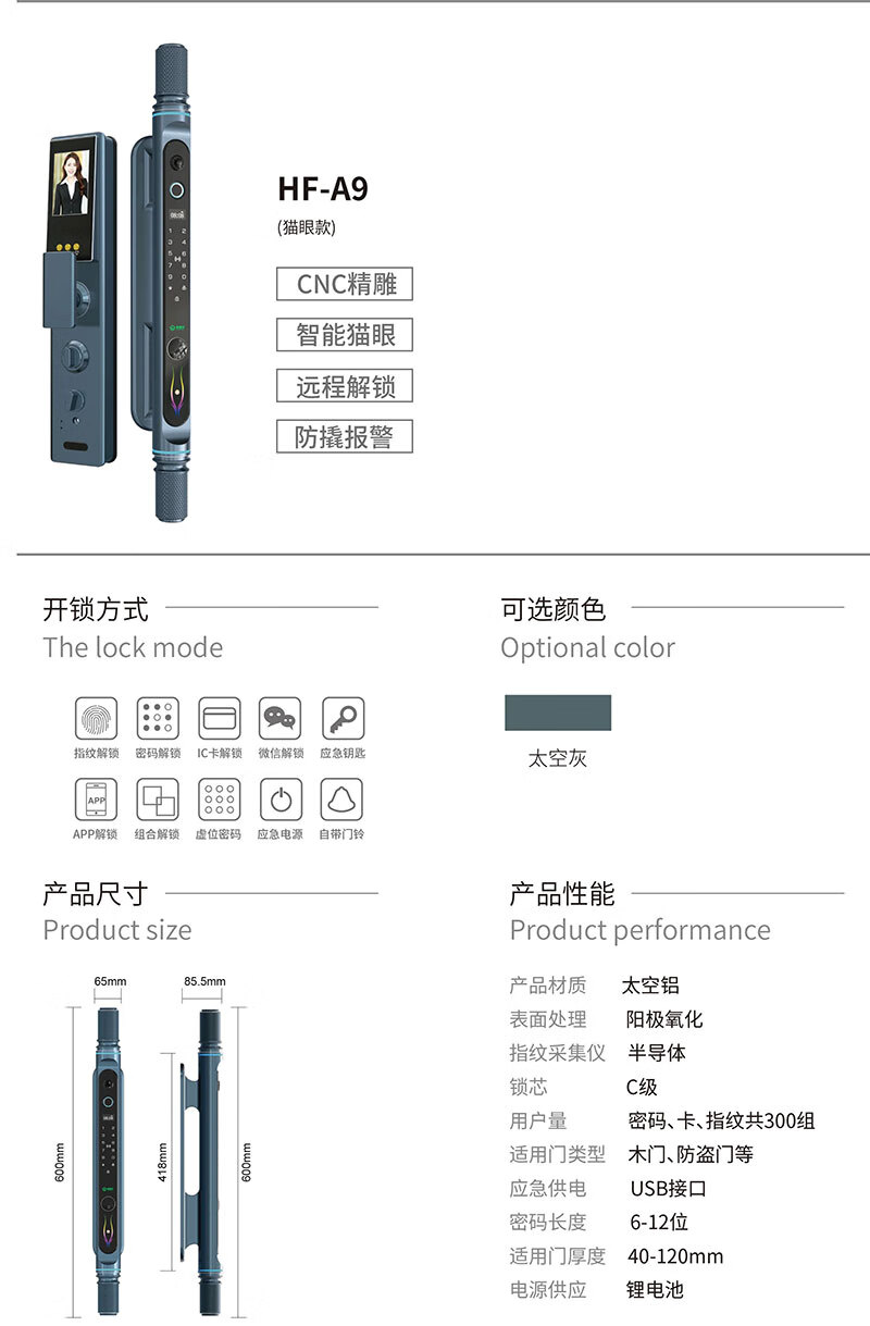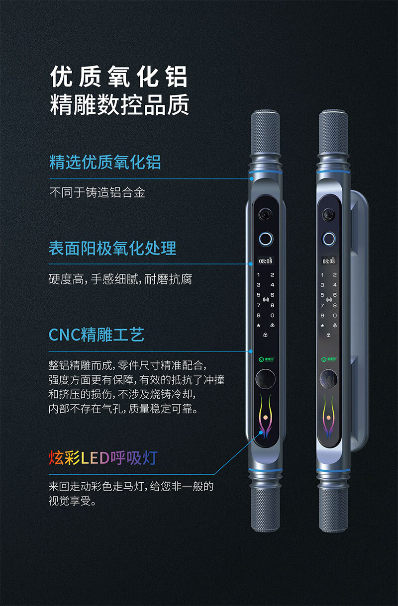 天龙一号 太空灰 CNC精雕 铸造铝工艺 炫彩LED灯 智能猫眼款 家家乐智能锁