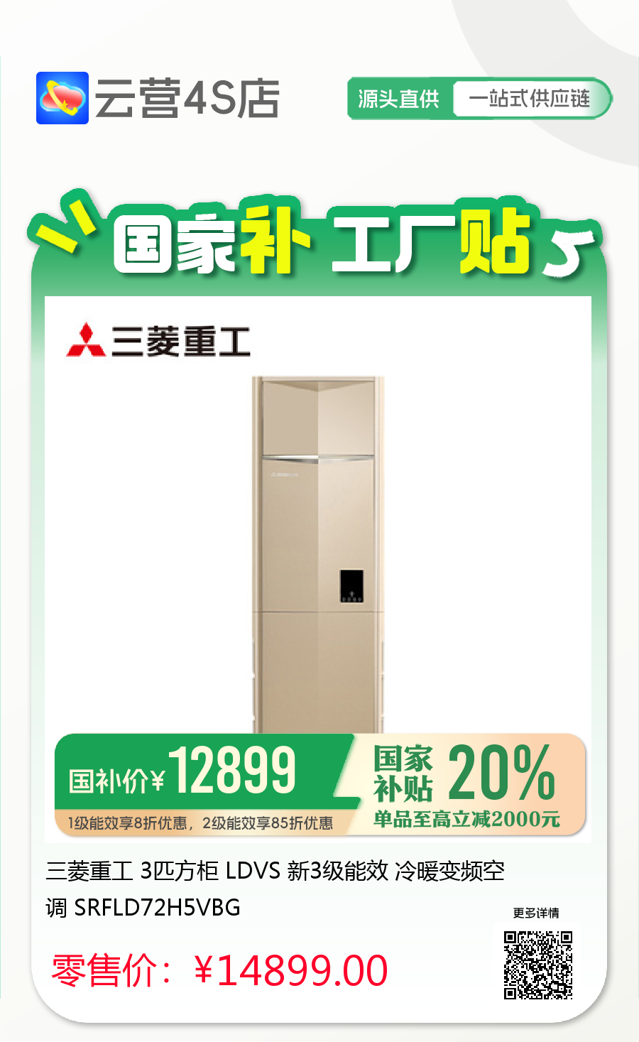 三菱重工 3匹方柜 LDVS 新3级能效 冷暖变频空调 SRFLD72H5VBG