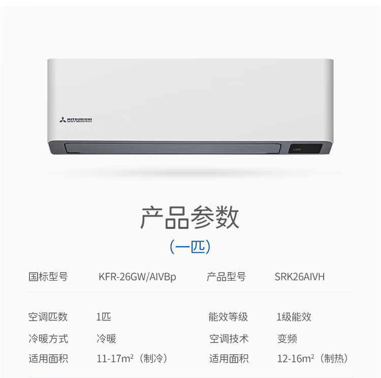 三菱重工 大1匹挂机 AIV 新1级能效 冷暖变频空调 SRK26AIVH
