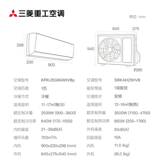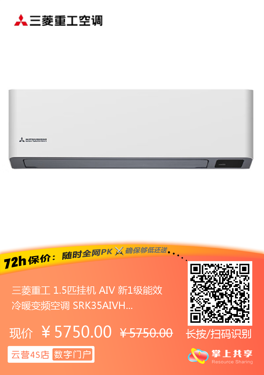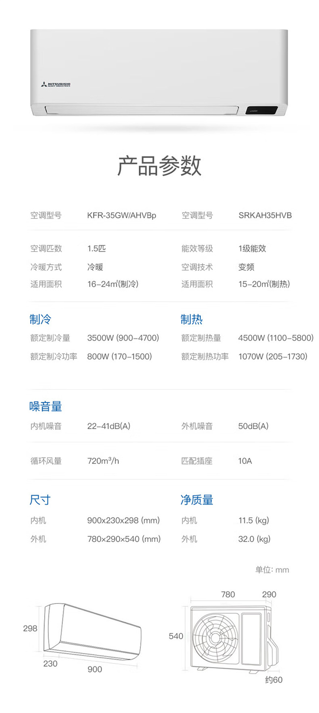三菱重工 1.5匹挂机 AIV 新1级能效 冷暖变频空调 SRK35AIVH