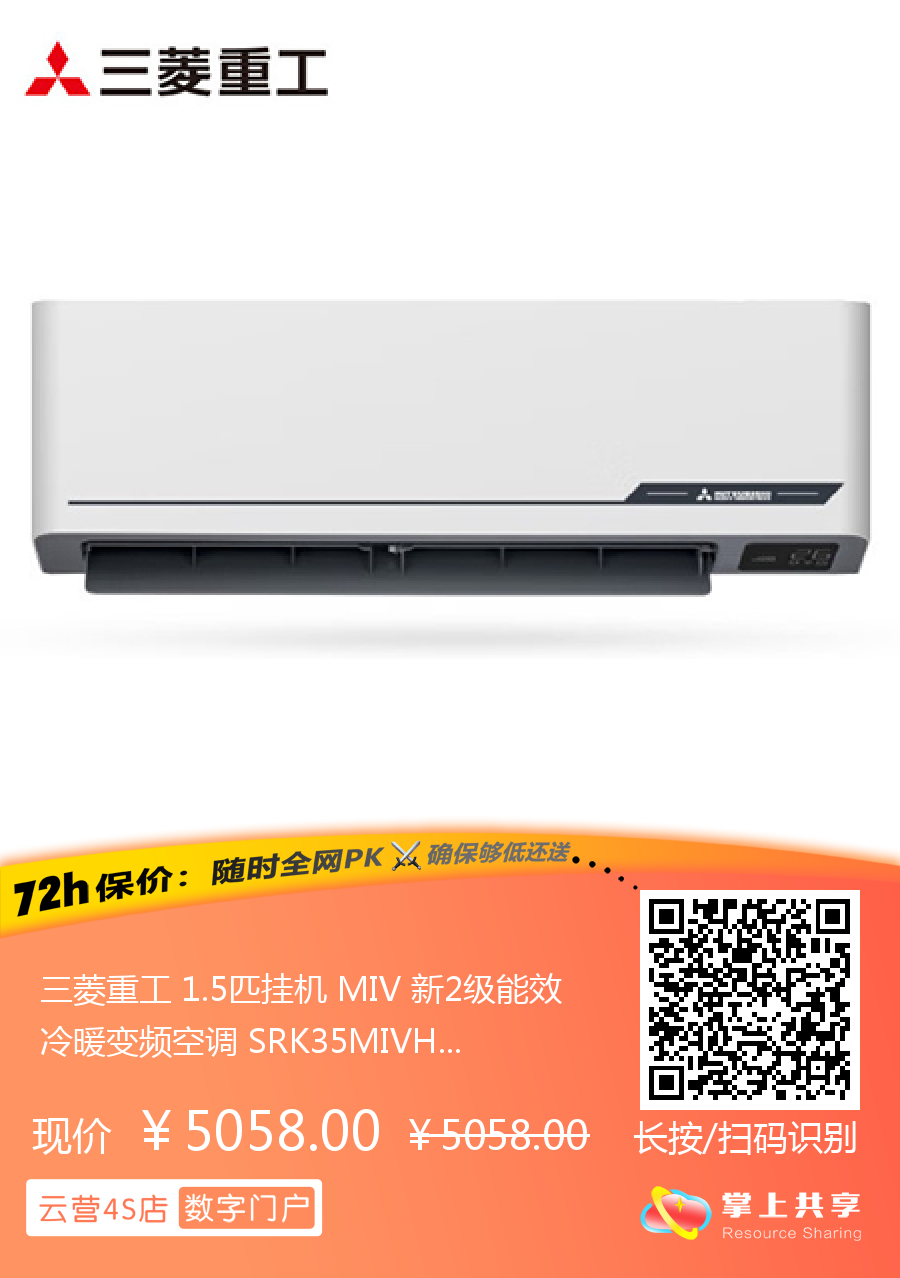 三菱重工 1.5匹挂机 MIV 新2级能效 冷暖变频空调 SRK35MIVH