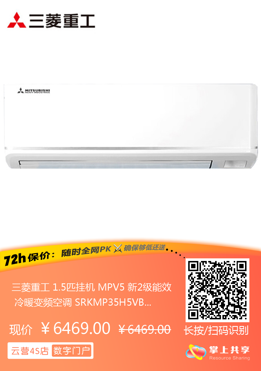 三菱重工 1.5匹挂机 MPV5 新2级能效 冷暖变频空调 SRKMP35H5VBW