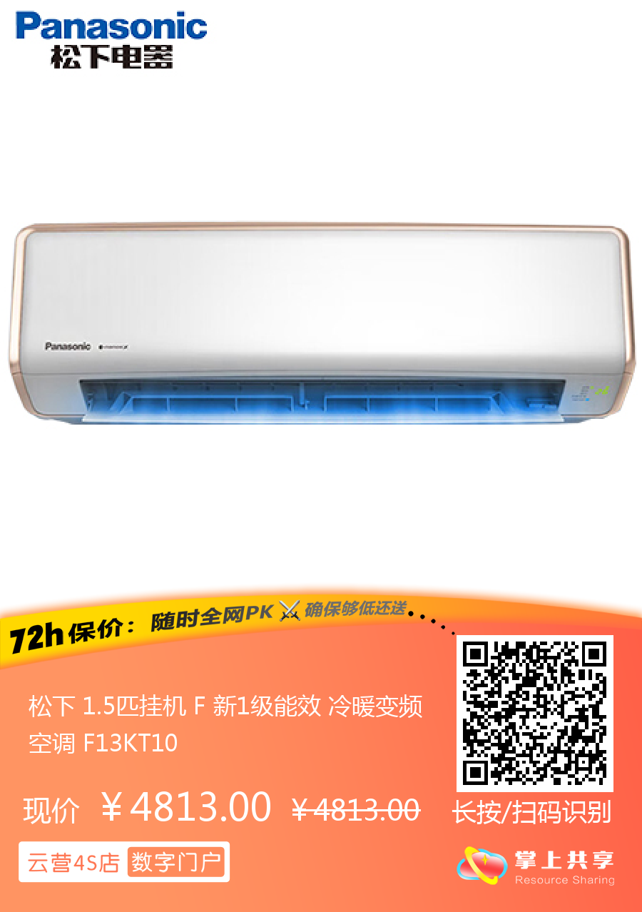 松下 1.5匹挂机 F 新1级能效 冷暖变频空调 F13KT10