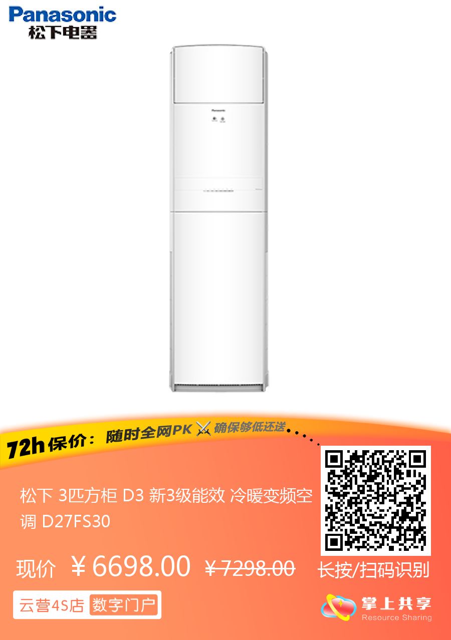 松下 3匹方柜 D3 新3级能效 冷暖变频空调 D27FS30
