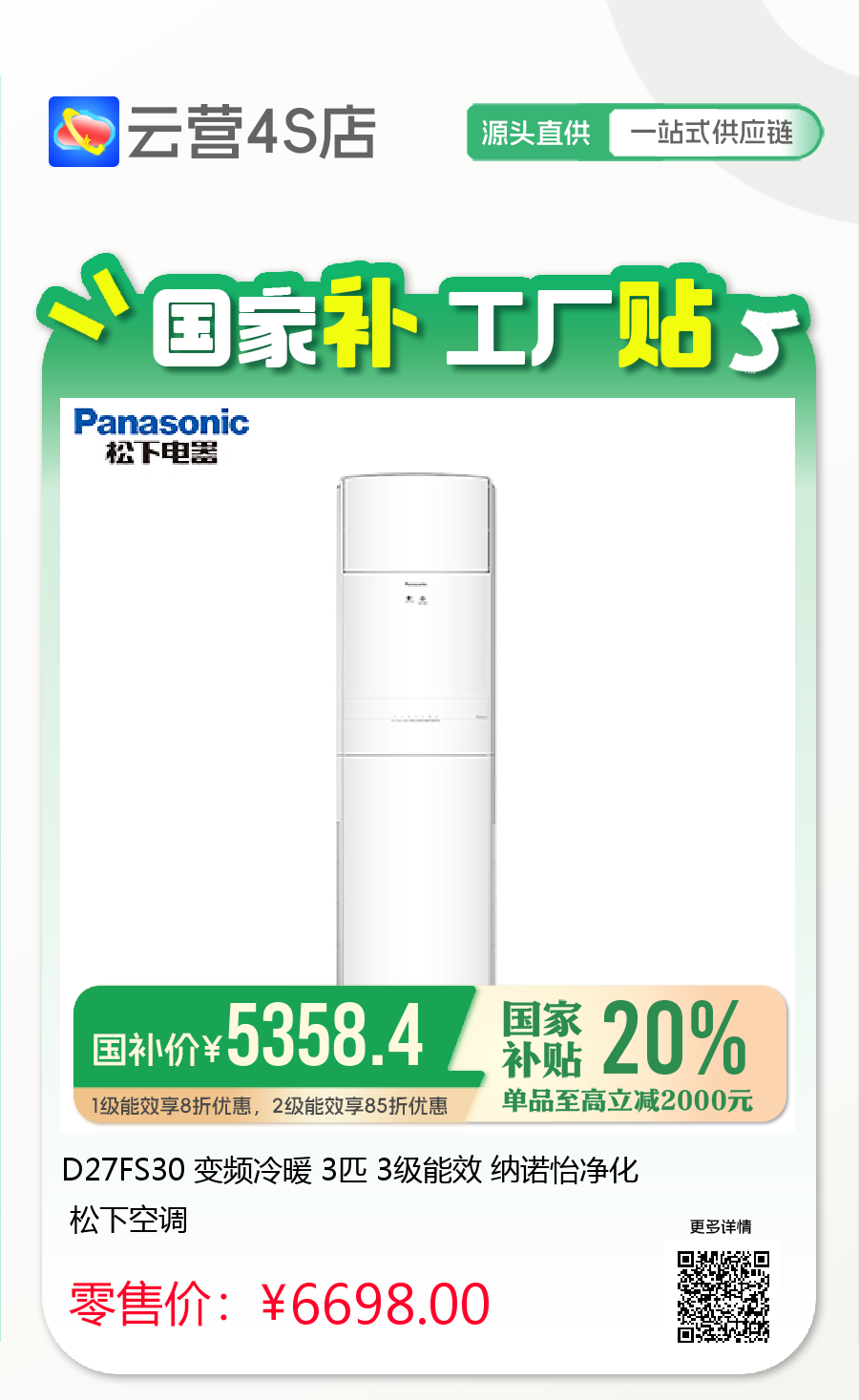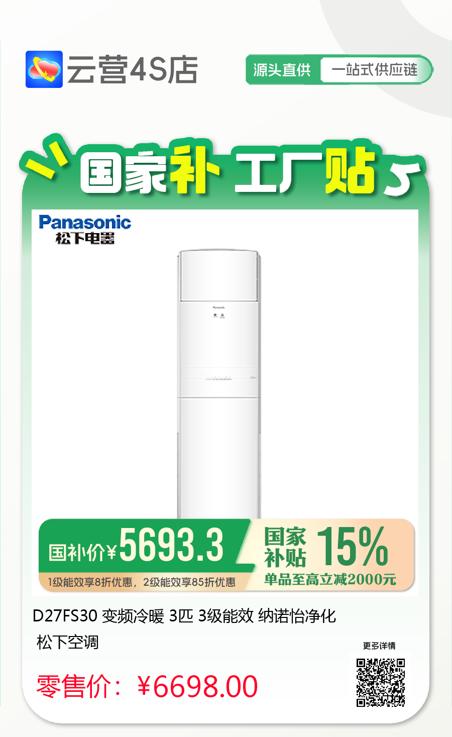 松下 3匹方柜 D3 新3级能效 冷暖变频空调 D27FS30