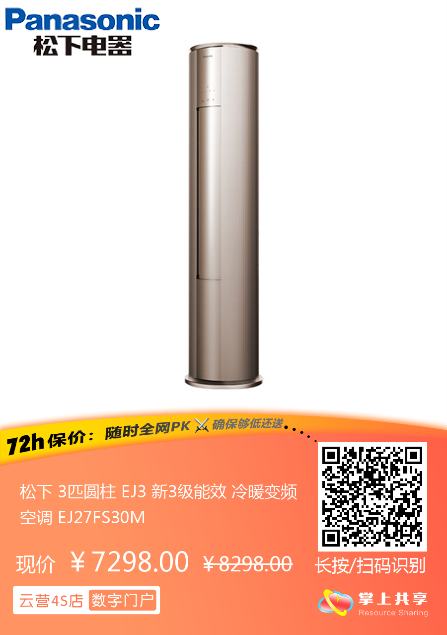 松下 3匹圆柱 EJ3 新3级能效 冷暖变频空调 EJ27FS30M