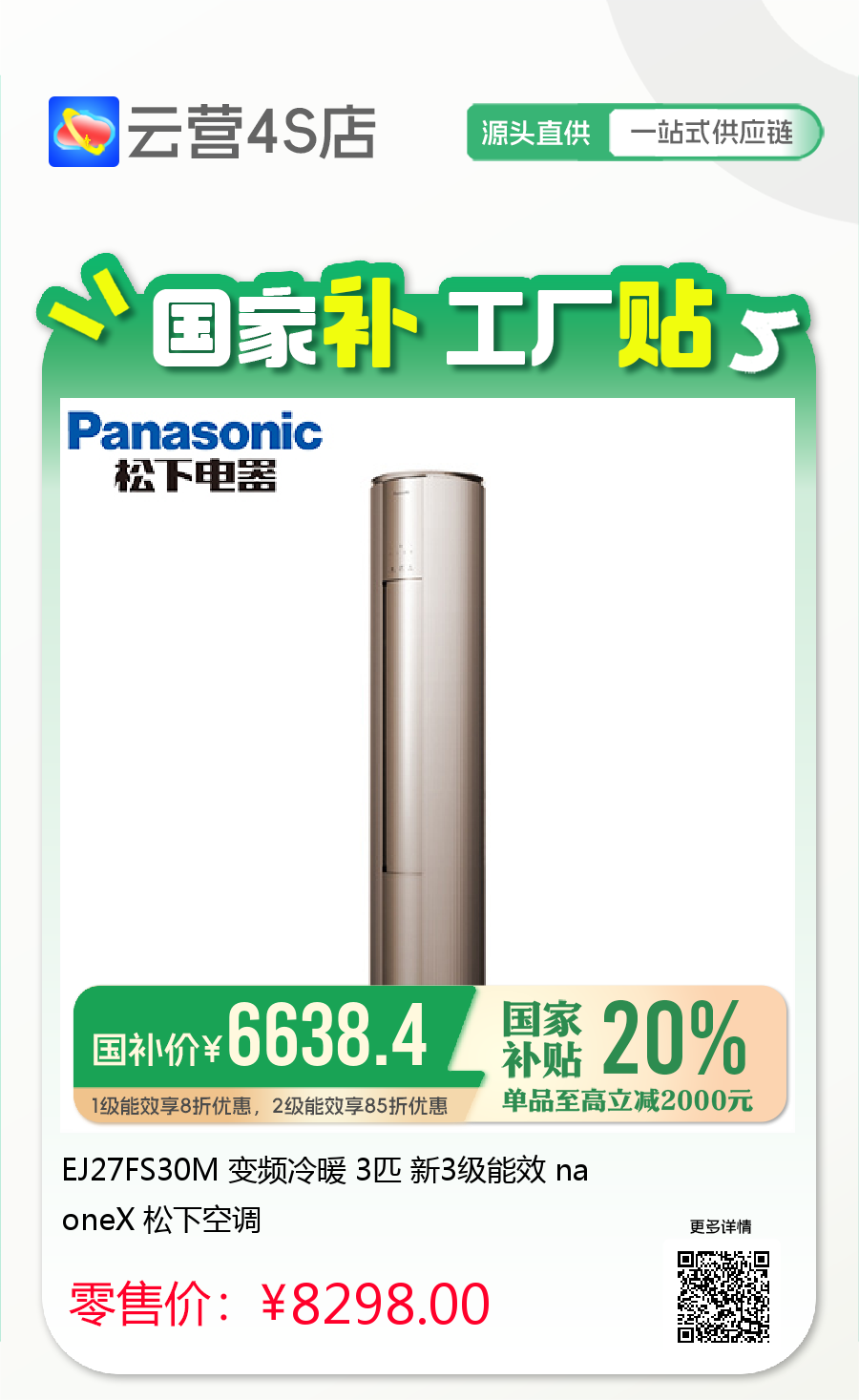 松下 3匹圆柱 EJ3 新3级能效 冷暖变频空调 EJ27FS30M