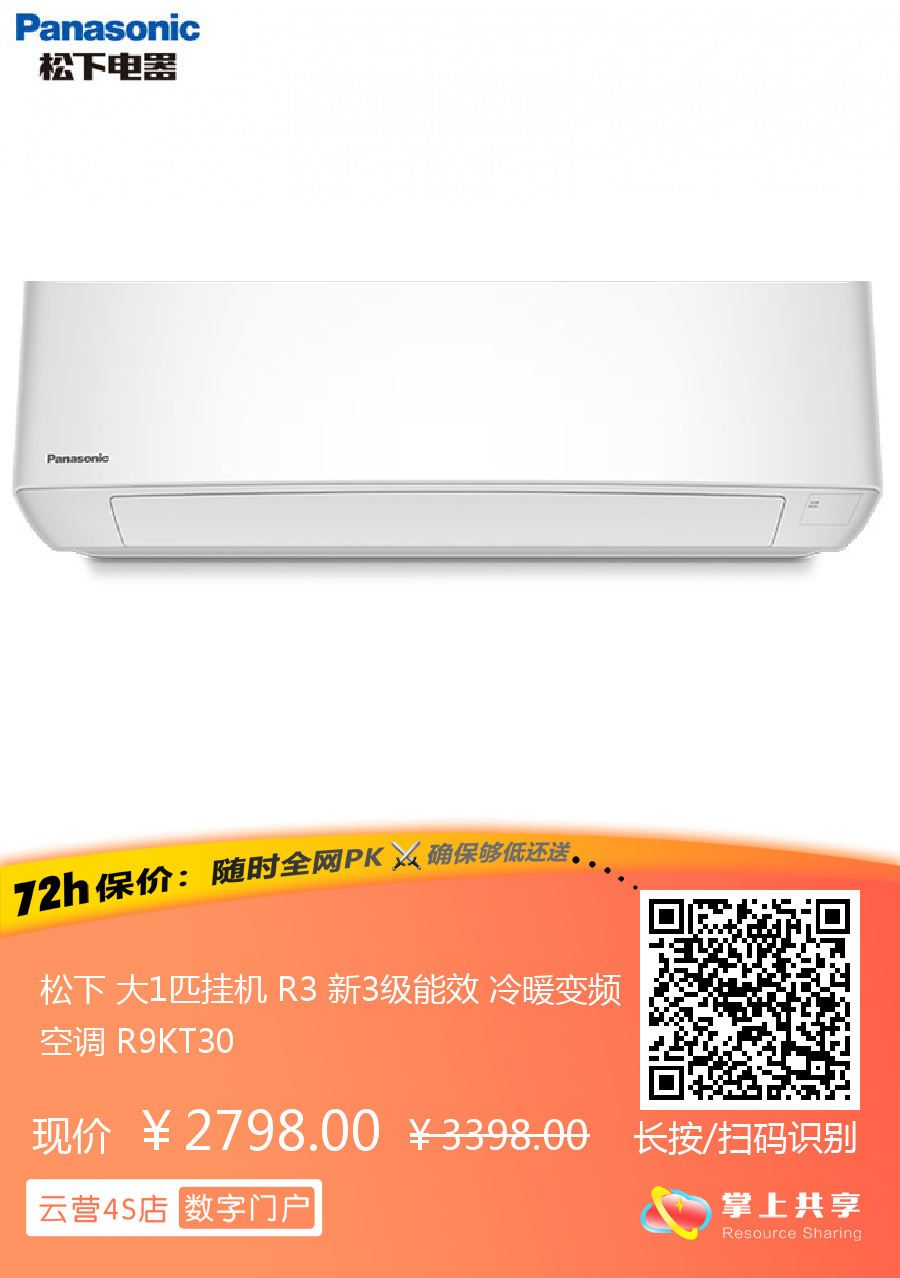 松下 大1匹挂机 R3 新3级能效 冷暖变频空调 R9KT30