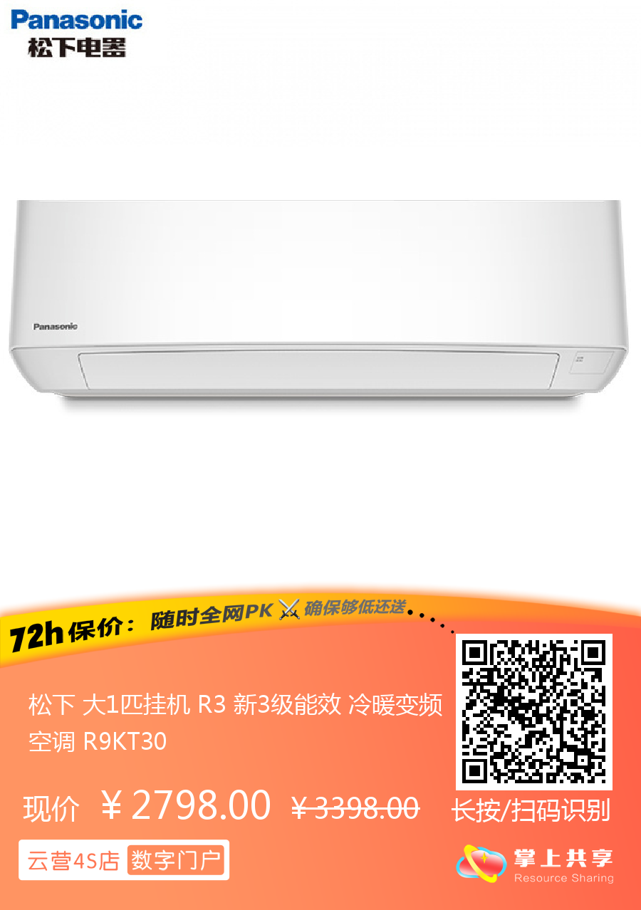 松下 大1匹挂机 R3 新3级能效 冷暖变频空调 R9KT30