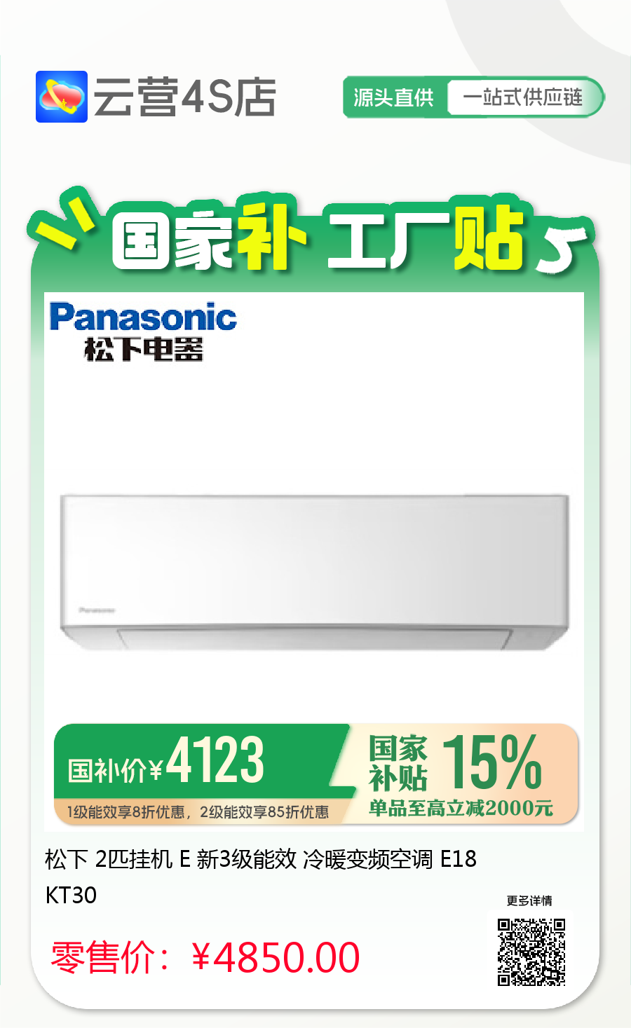 松下 2匹挂机 E 新3级能效 冷暖变频空调 E18KT30