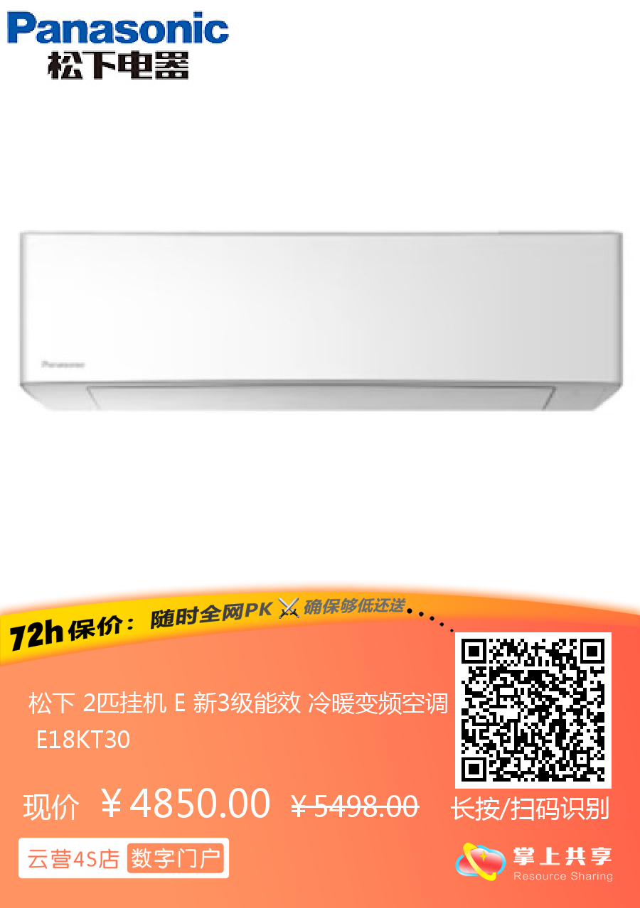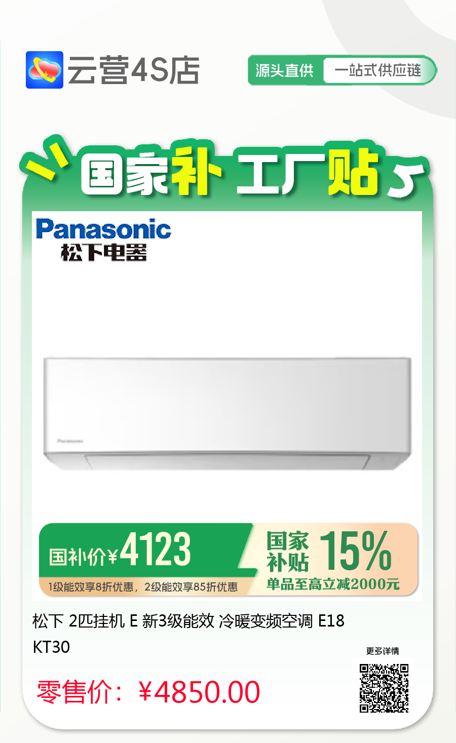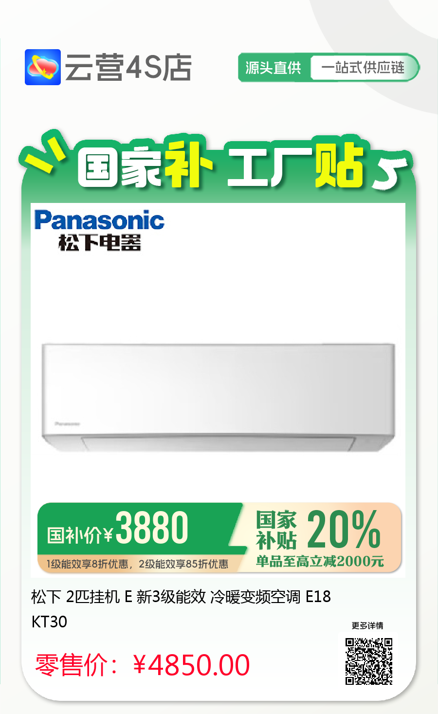 松下 2匹挂机 E 新3级能效 冷暖变频空调 E18KT30