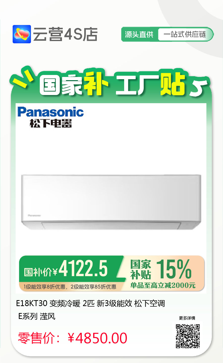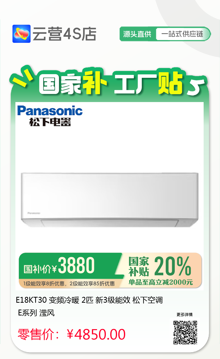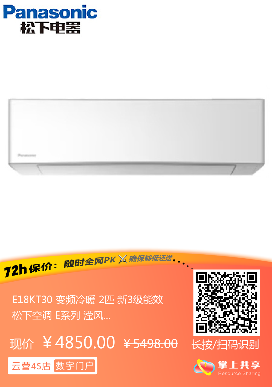 松下 2匹挂机 E 新3级能效 冷暖变频空调 E18KT30